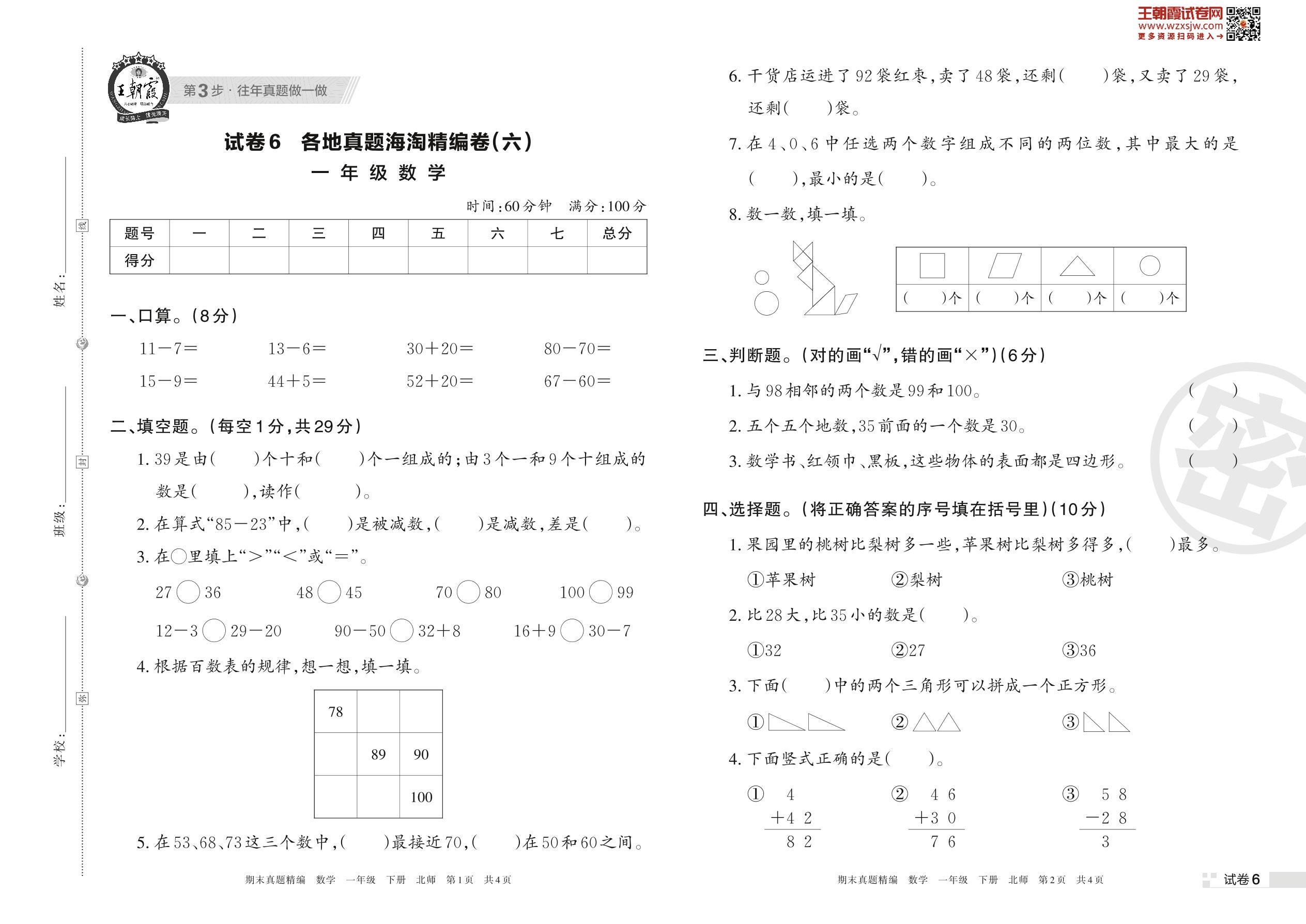 各地真题海淘精编卷(六)一年级下册数学(北师版)_R230420105654409【6】