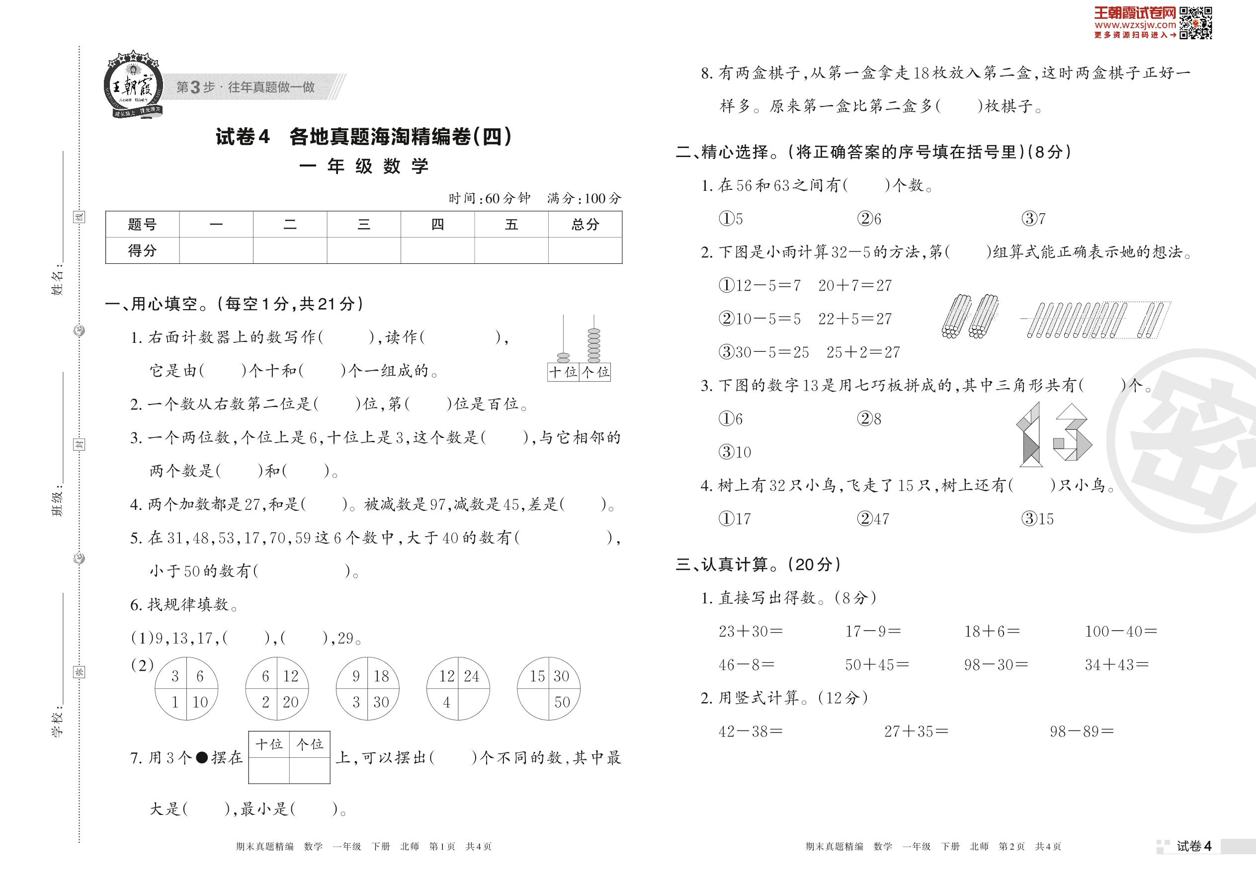 各地真题海淘精编卷(四)一年级下册数学(北师版)_R230420105654566【4】