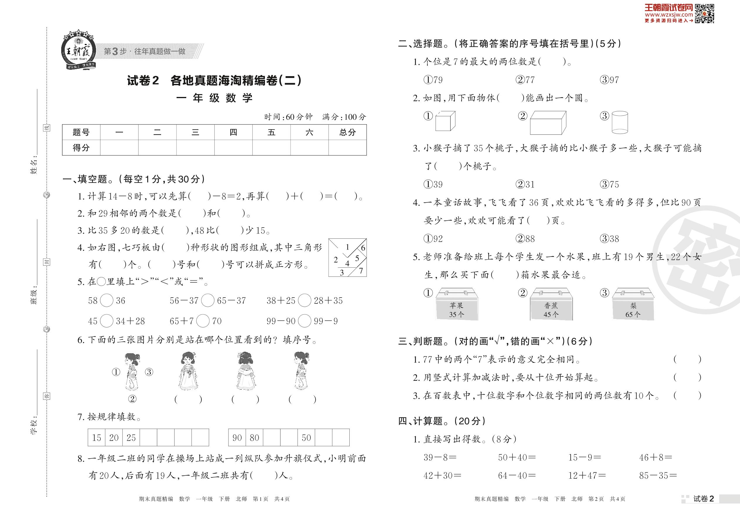 各地真题海淘精编卷(二)一年级下册数学(北师版)_R230420105655293【2】