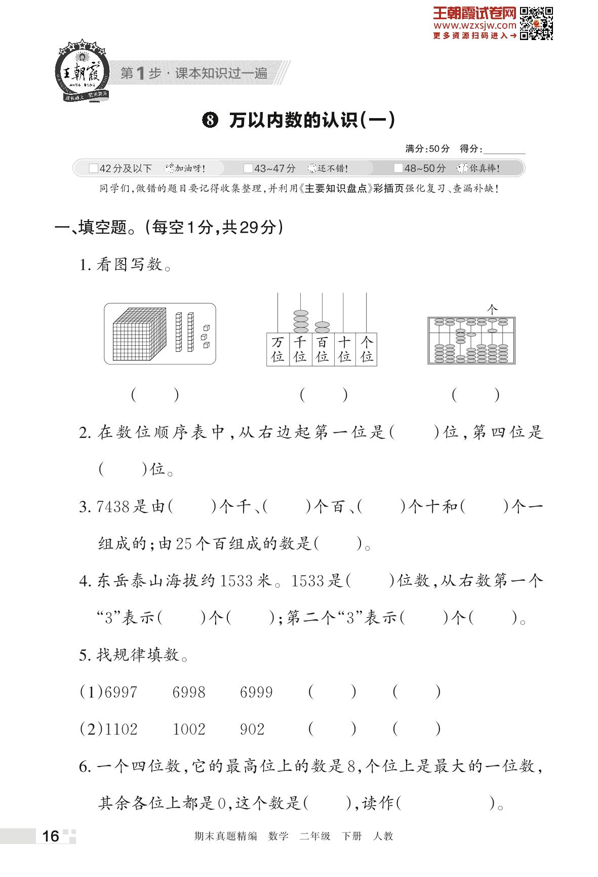 王朝霞期末过课本——8 万以内数的认识(一)二年级下册数学(人教版)_R230420110355358