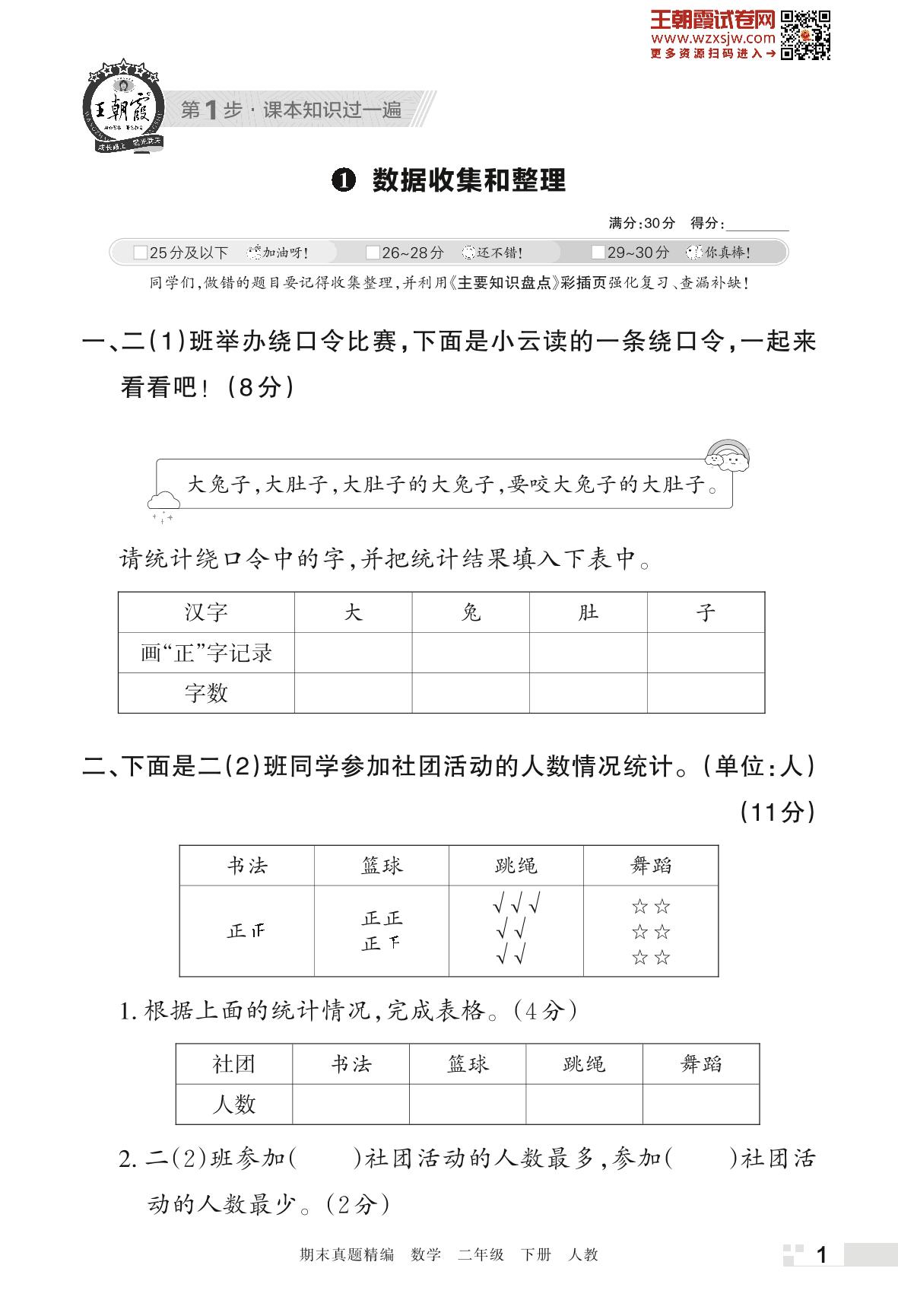王朝霞期末过课本——1 数据收集和整理二年级下册数学(人教版)_R230420110356535