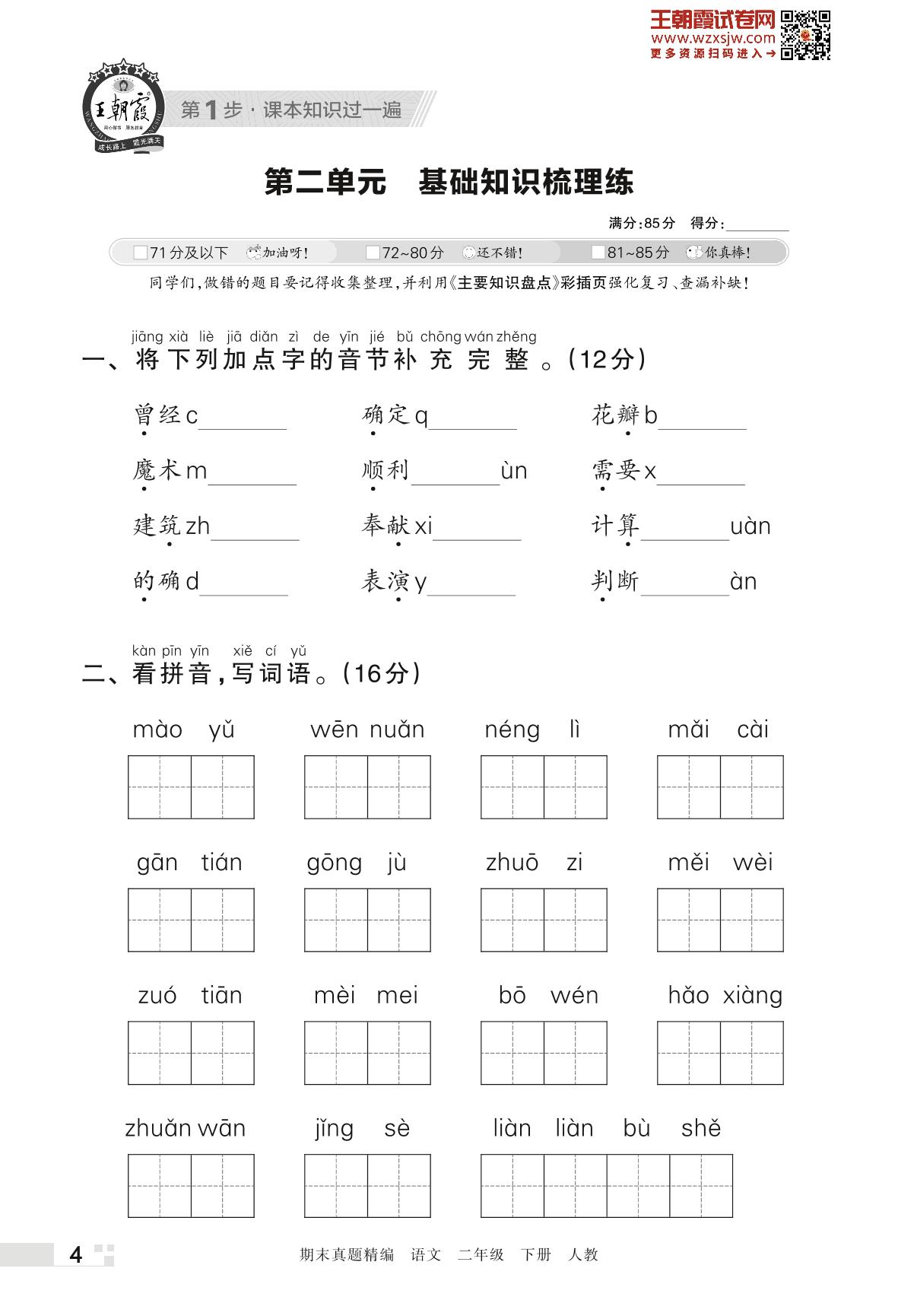 王朝霞期末过课本——第二单元 基础知识梳理练二年级下册语文(人教版)_R230420111150664
