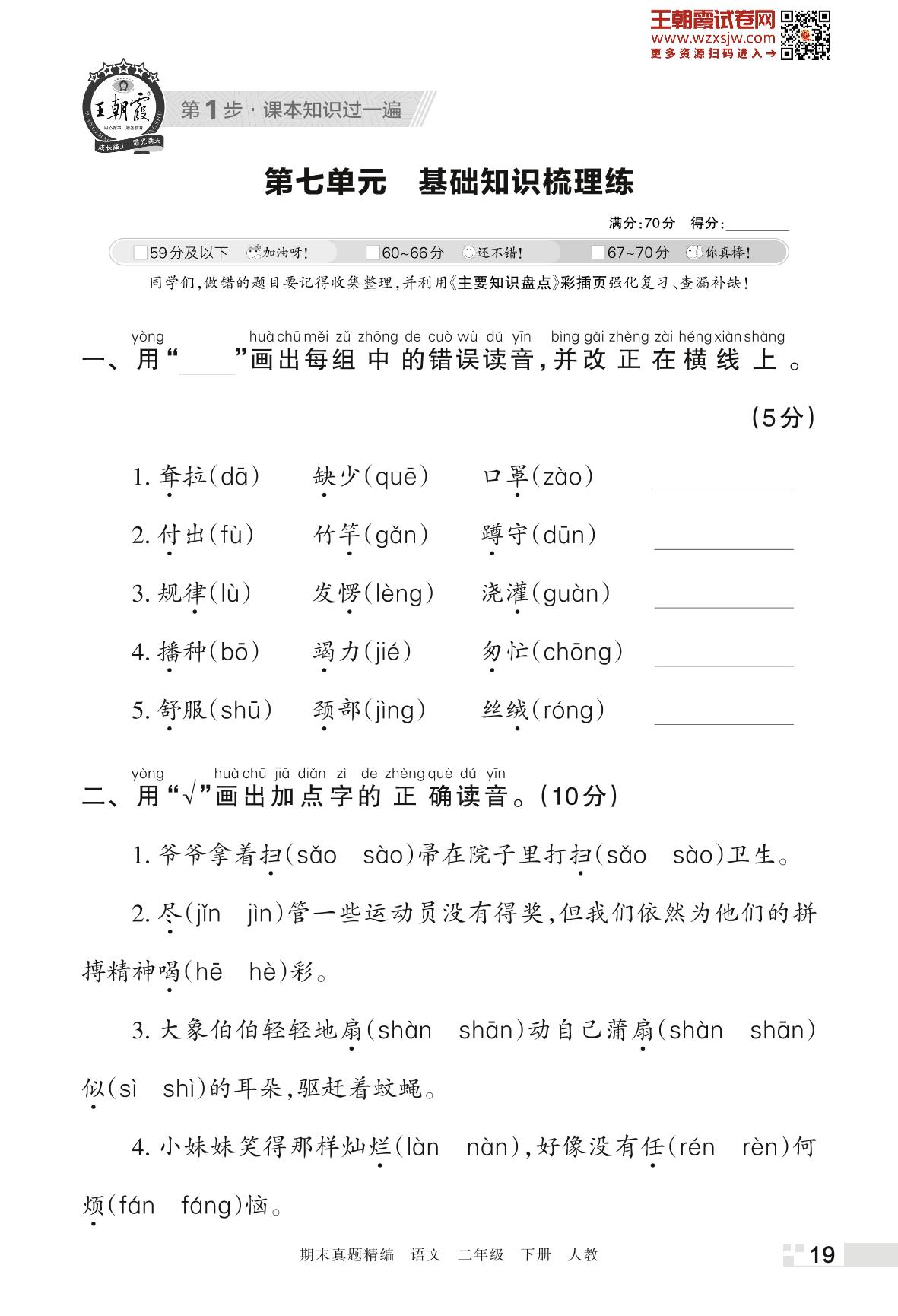 王朝霞期末过课本——第七单元 基础知识梳理练二年级下册语文(人教版)_R230420111150755