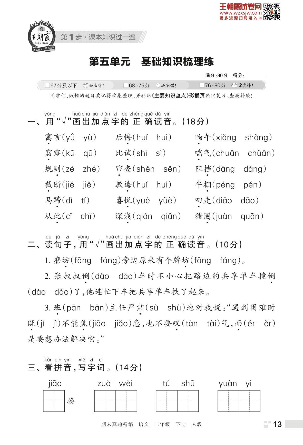 王朝霞期末过课本——第五单元 基础知识梳理练二年级下册语文(人教版)_R230420111150043