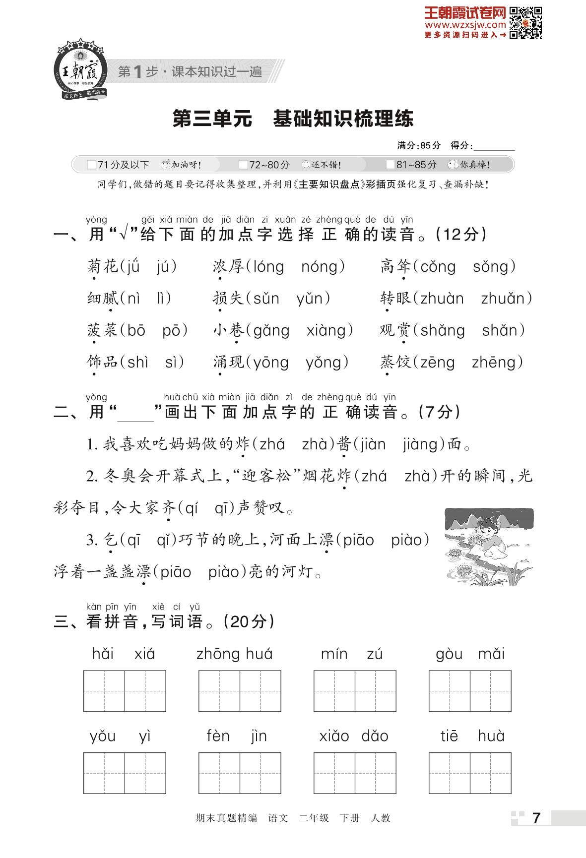 王朝霞期末过课本——第三单元 基础知识梳理练二年级下册语文(人教版)_R230420111150012