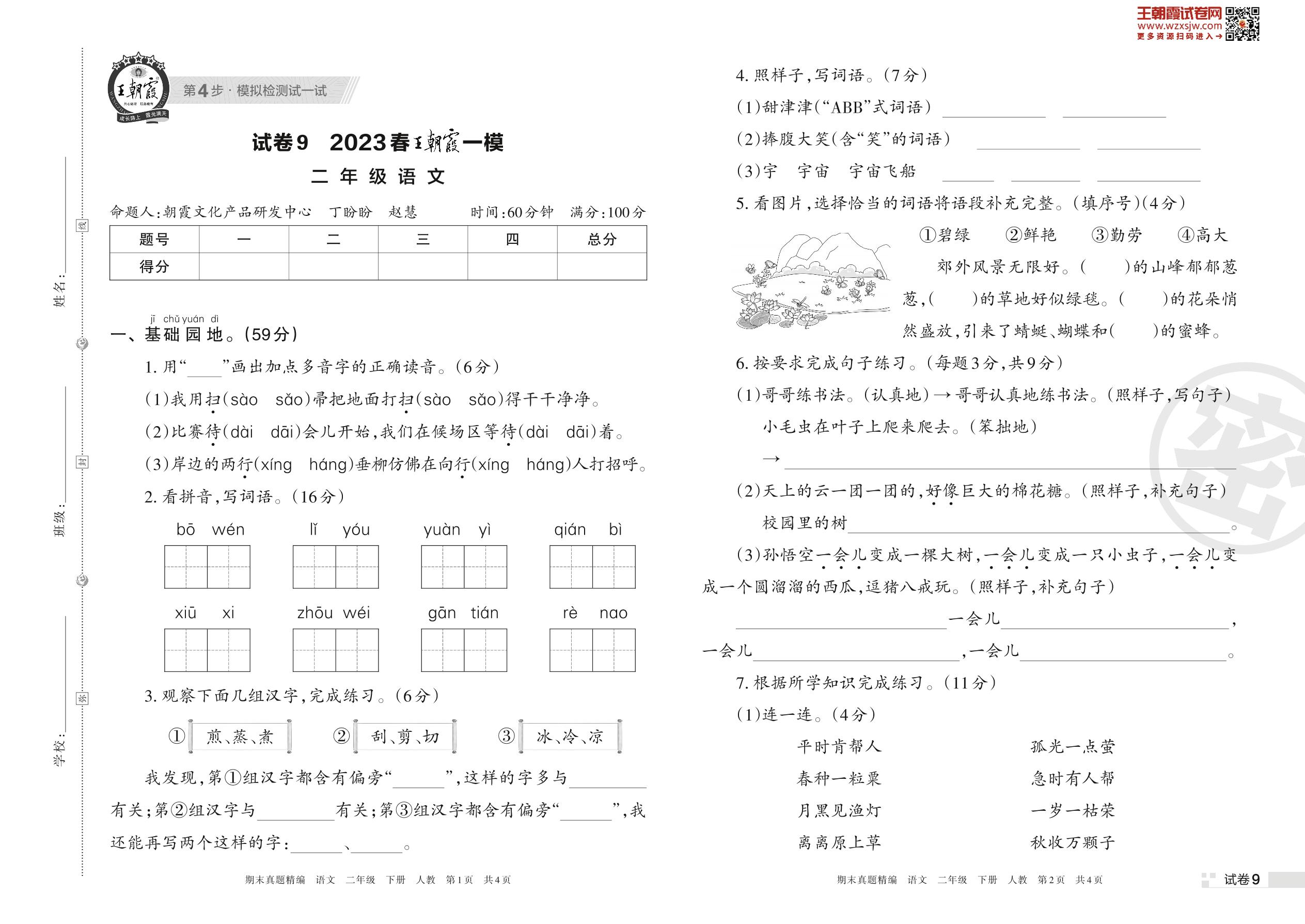 王朝霞期末模拟卷二年级下册语文(人教版)_R230420111152406【9】