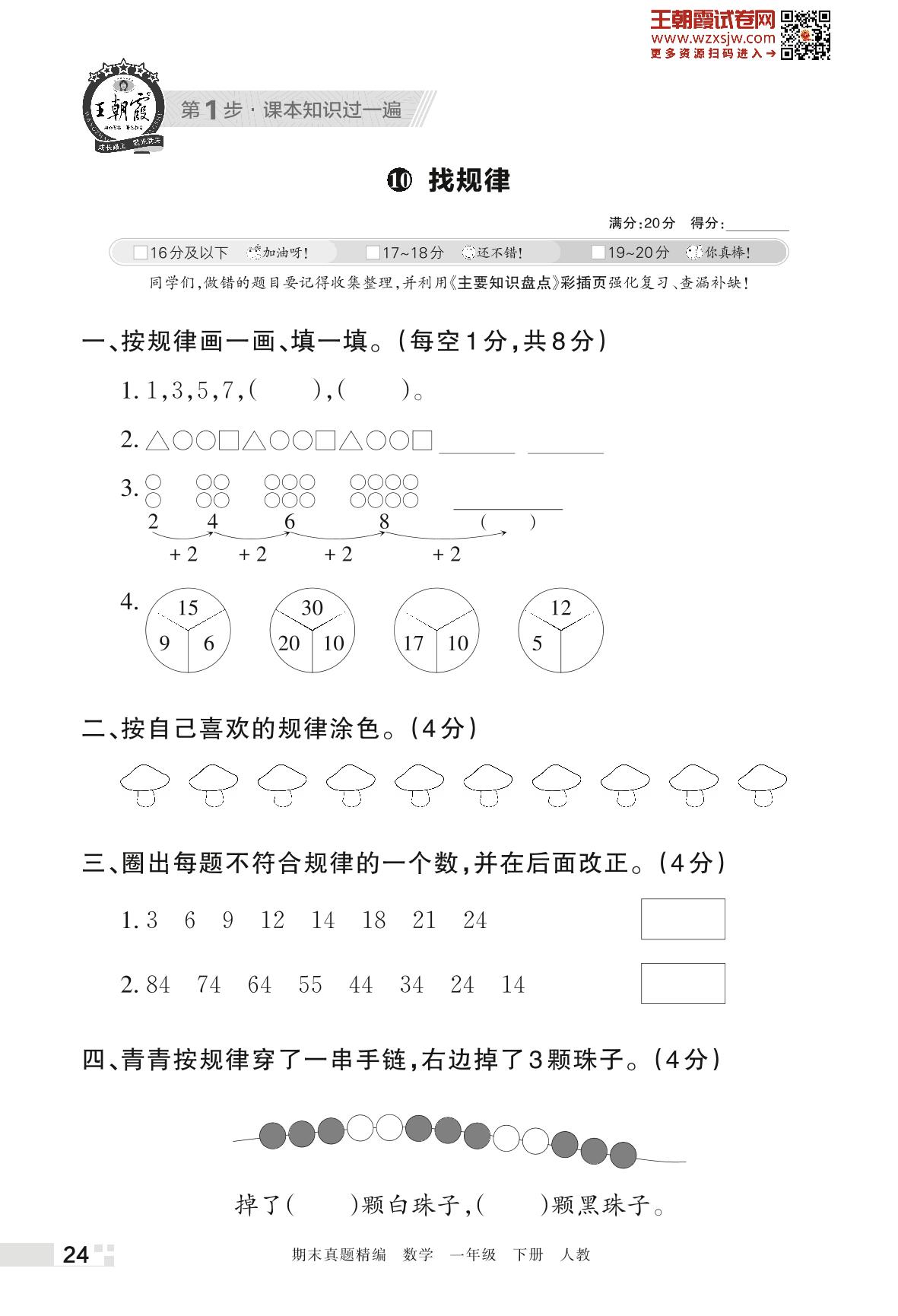王朝霞期末过课本——10 找规律一年级下册数学(人教版)_R230420114628155
