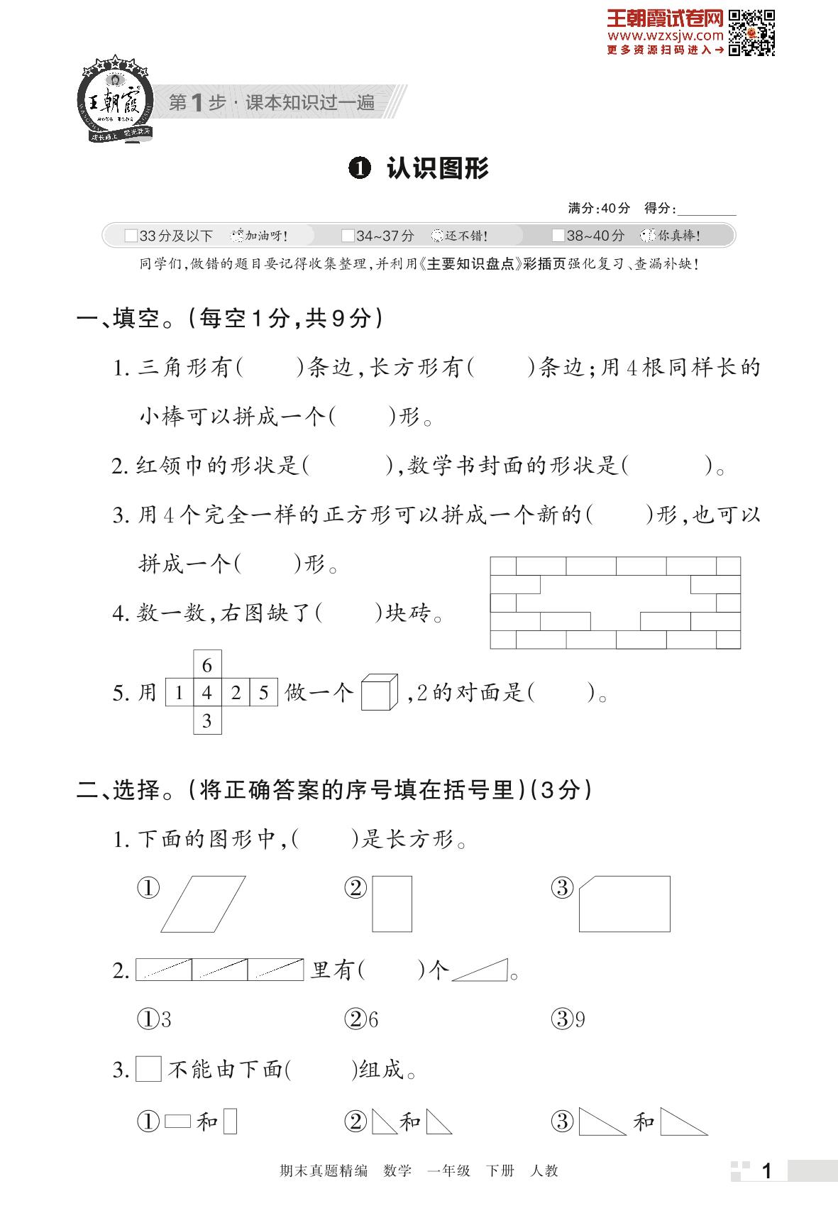 王朝霞期末过课本——1 认识图形一年级下册数学(人教版)_R230420114628456