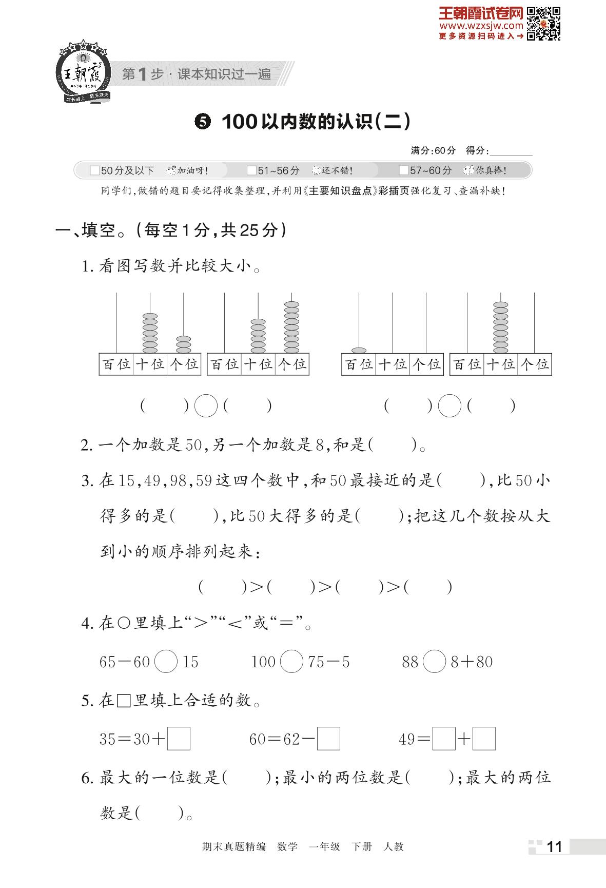 王朝霞期末过课本——5 100以内数的认识(二)一年级下册数学(人教版)_R230420114628573