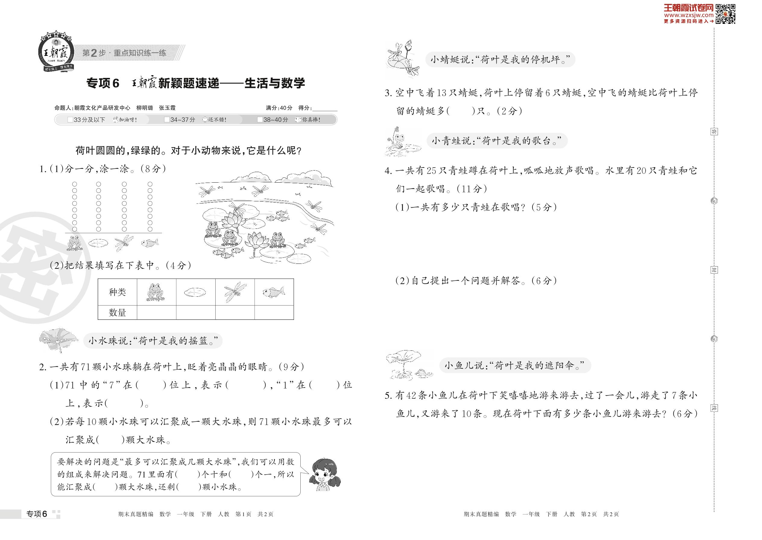 王朝霞期末专项卷——王朝霞新颖题速递:生活与数学一年级下册数学(人教版)_R230420114629741【6】