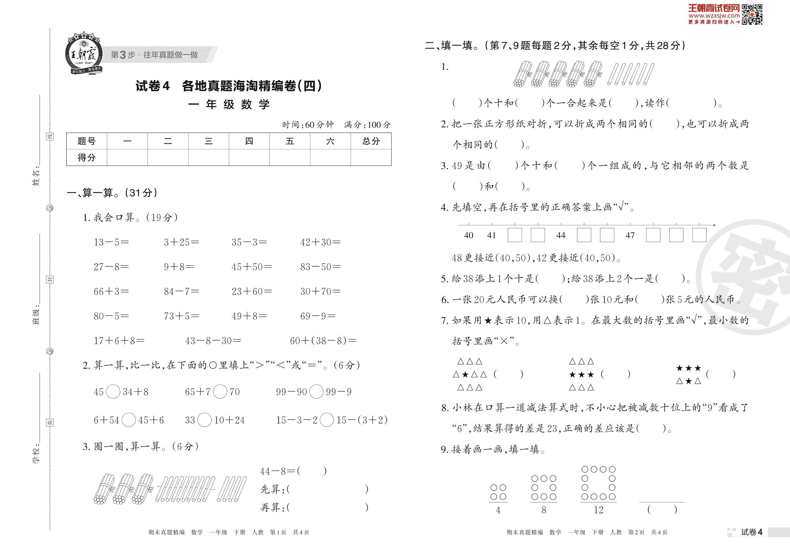各地真题海淘精编卷(四)一年级下册数学(人教版)_R230420114629013【4】