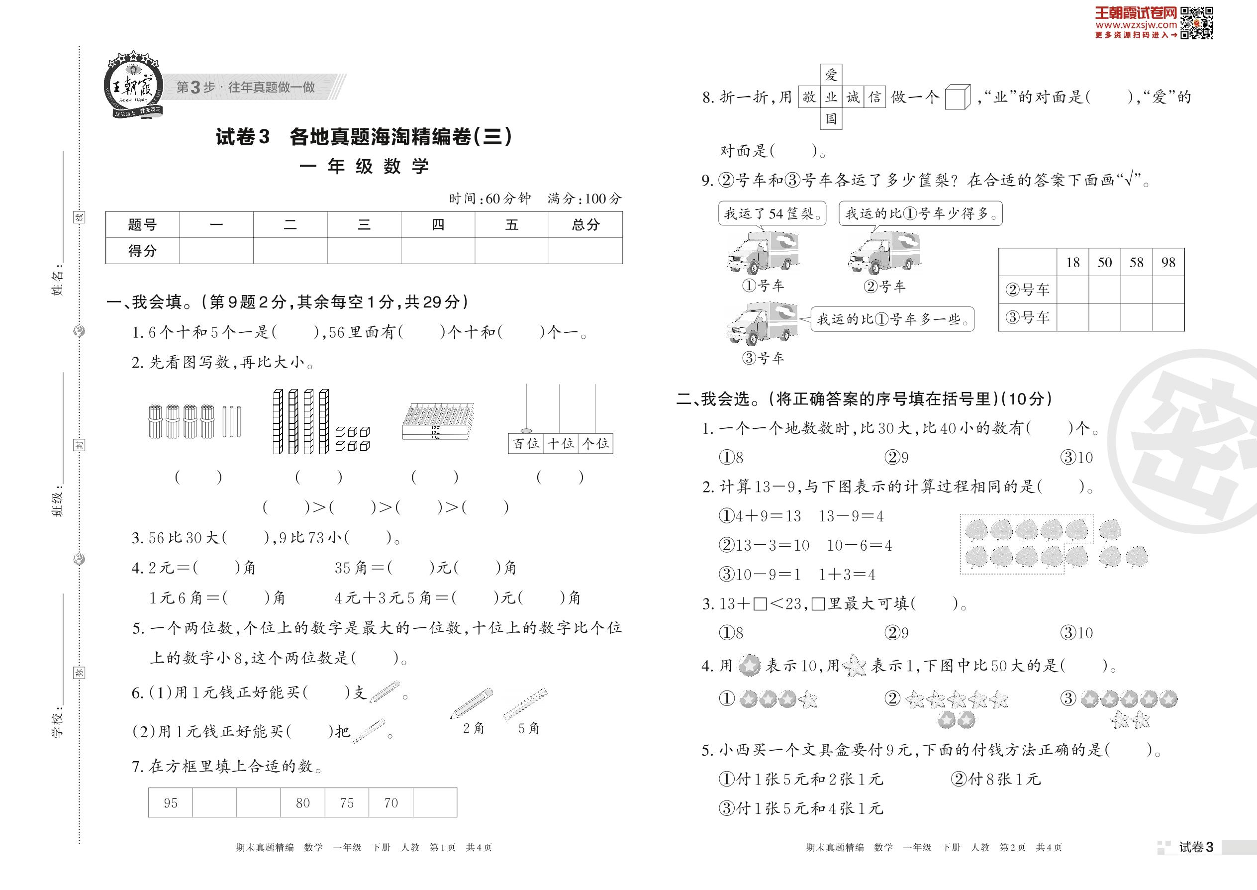 一年级数学人教版下册期末卷