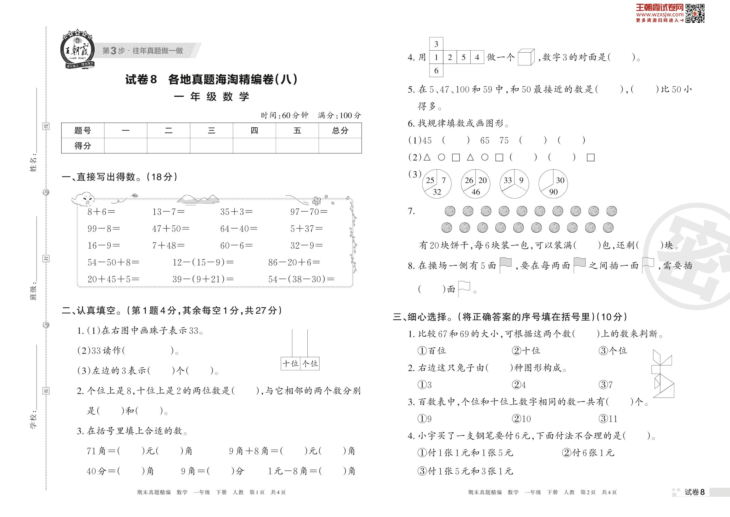 一年级数学人教版下册期末卷