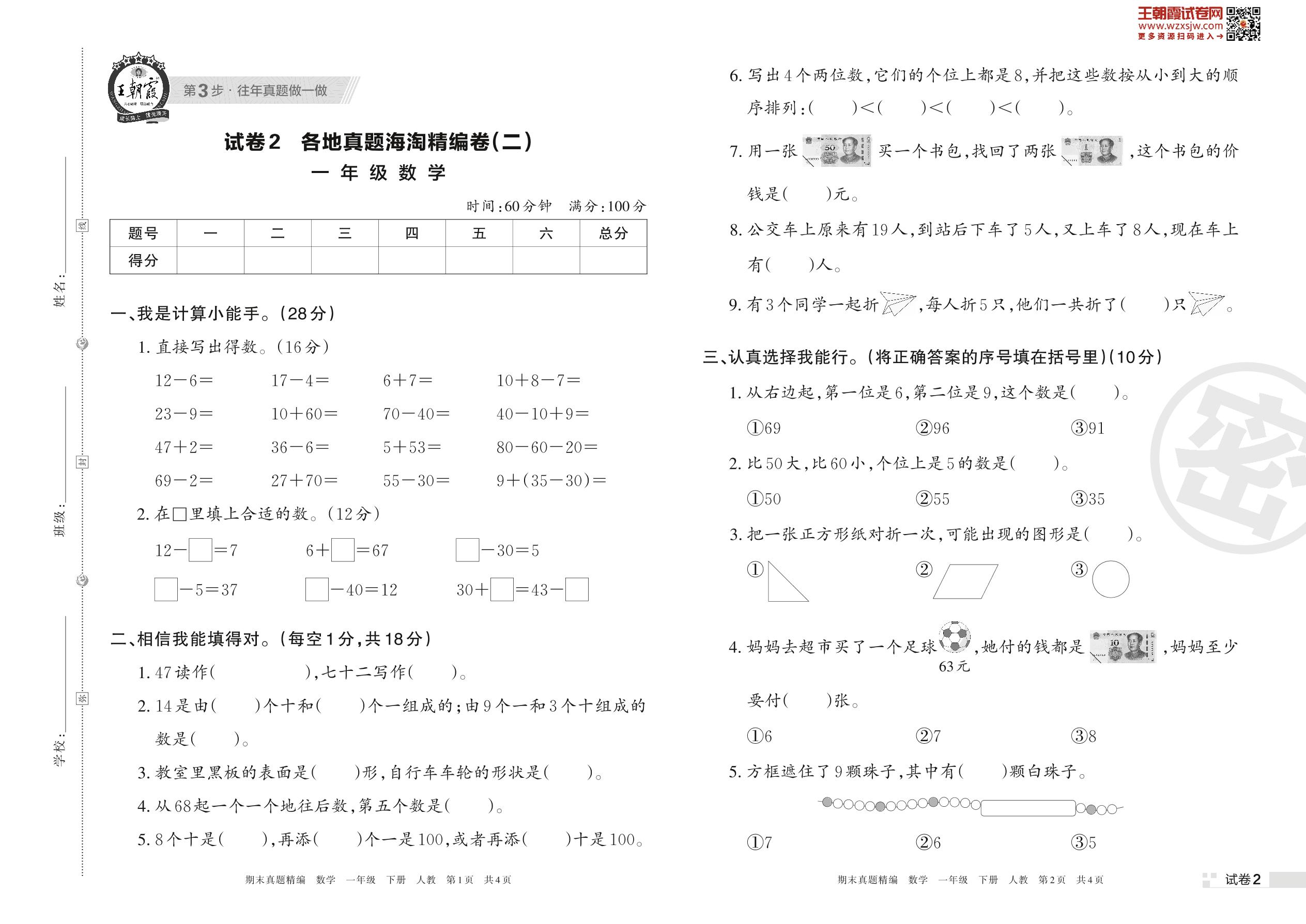 各地真题海淘精编卷(二)一年级下册数学(人教版)_R230420114630261【2】