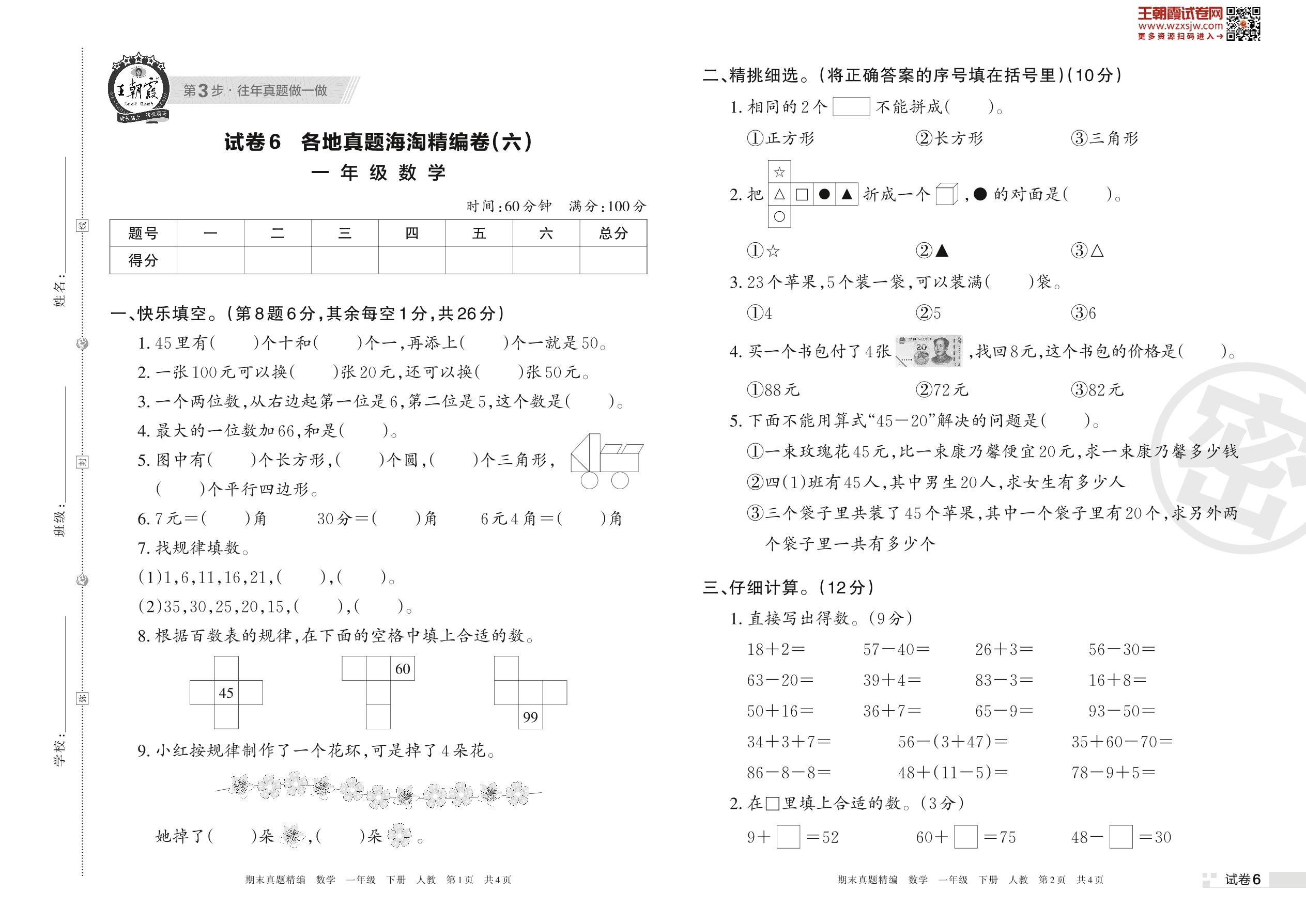 各地真题海淘精编卷(六)一年级下册数学(人教版)_R230420114630597【6】