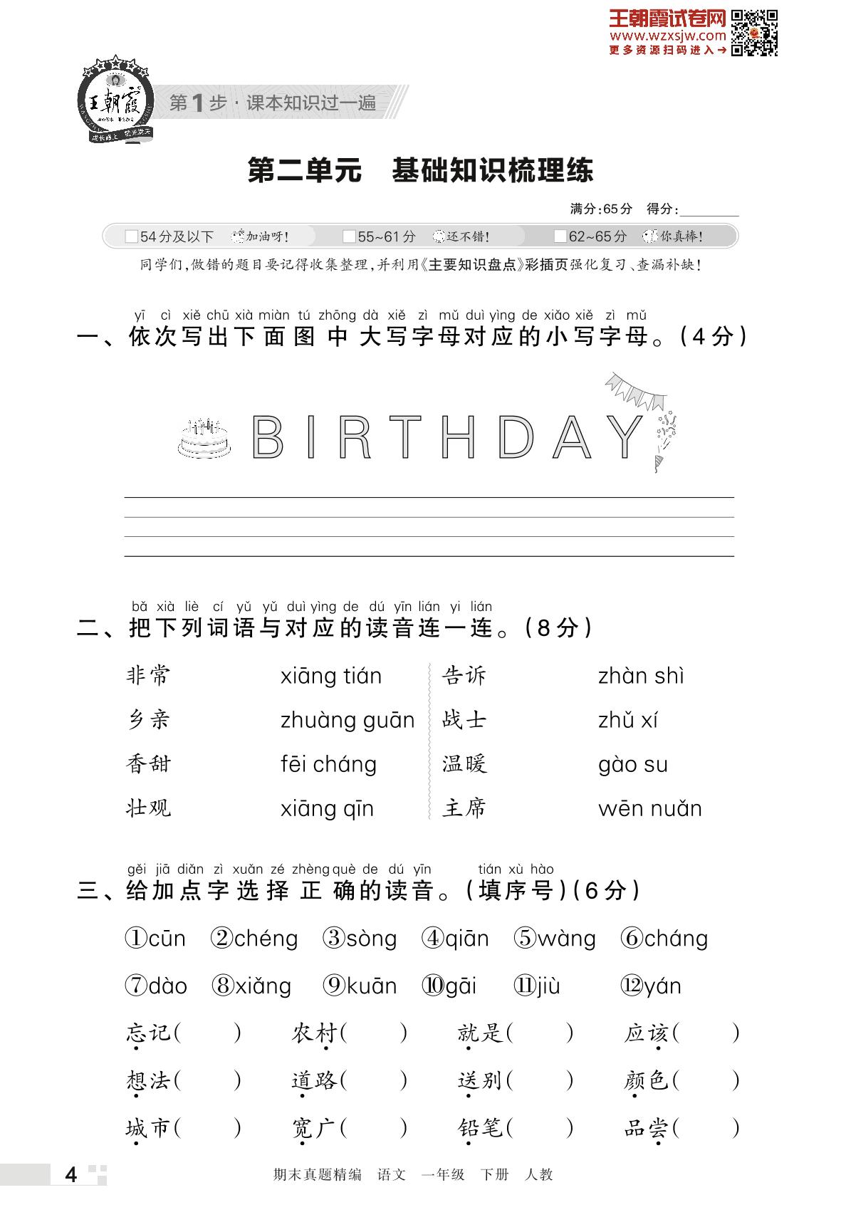 王朝霞期末过课本——第二单元 基础知识梳理练一年级下册语文(人教版)_R230420115424947
