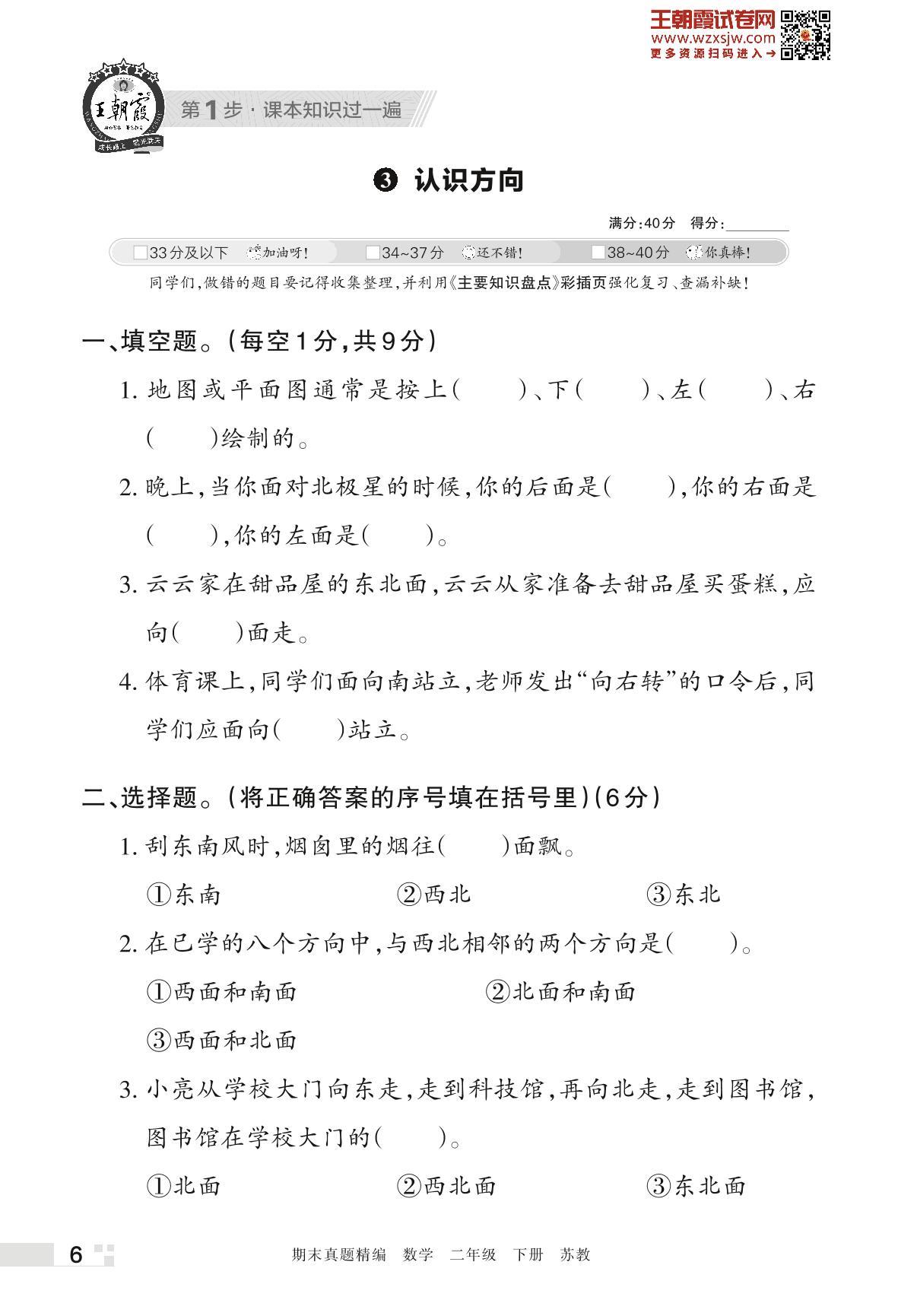 王朝霞期末过课本——3 认识方向二年级下册数学(苏教版)_R230420125328091