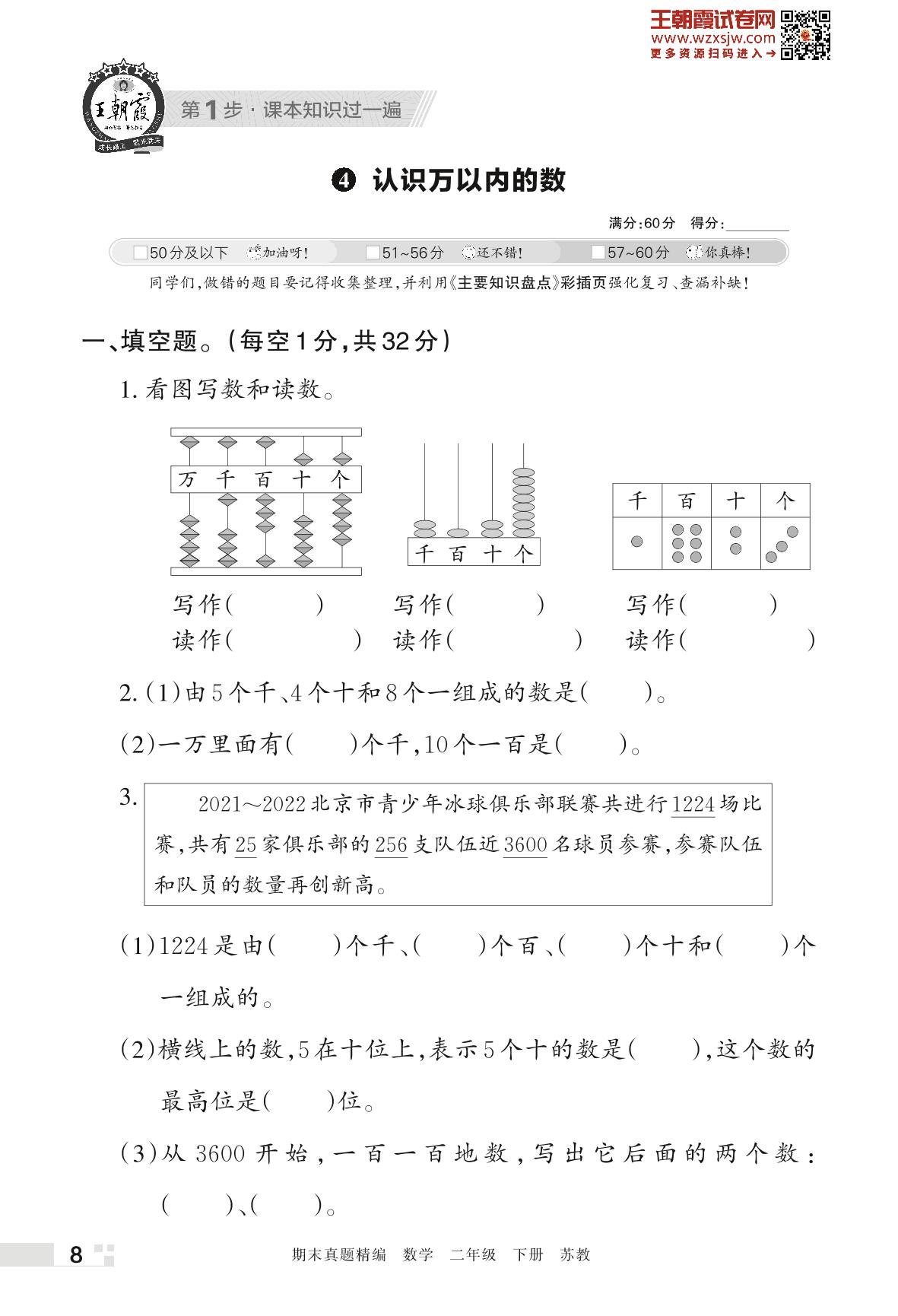 王朝霞期末过课本——4 认识万以内的数二年级下册数学(苏教版)_R230420125328309