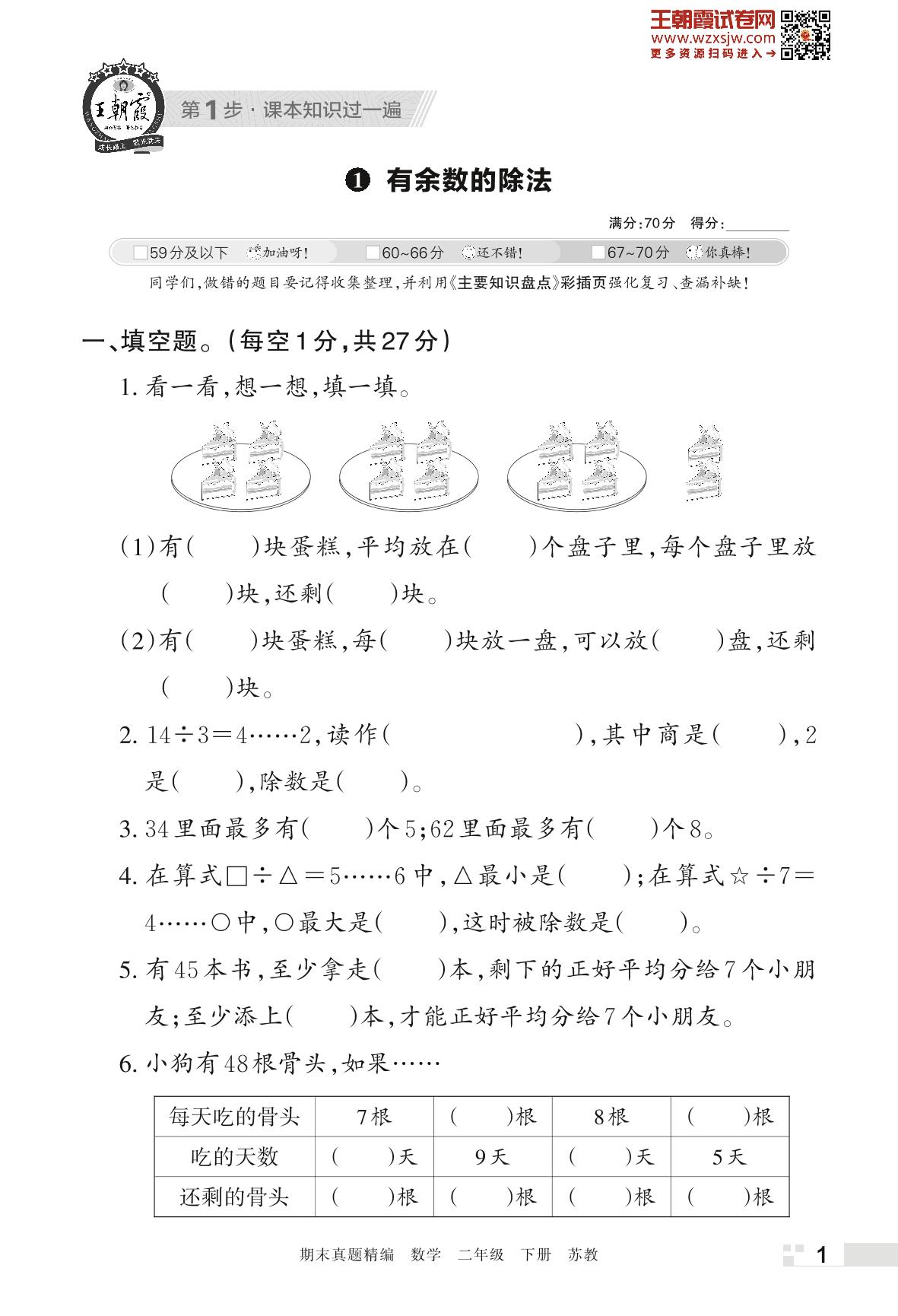 王朝霞期末过课本——1 有余数的除法二年级下册数学(苏教版)_R230420125328059