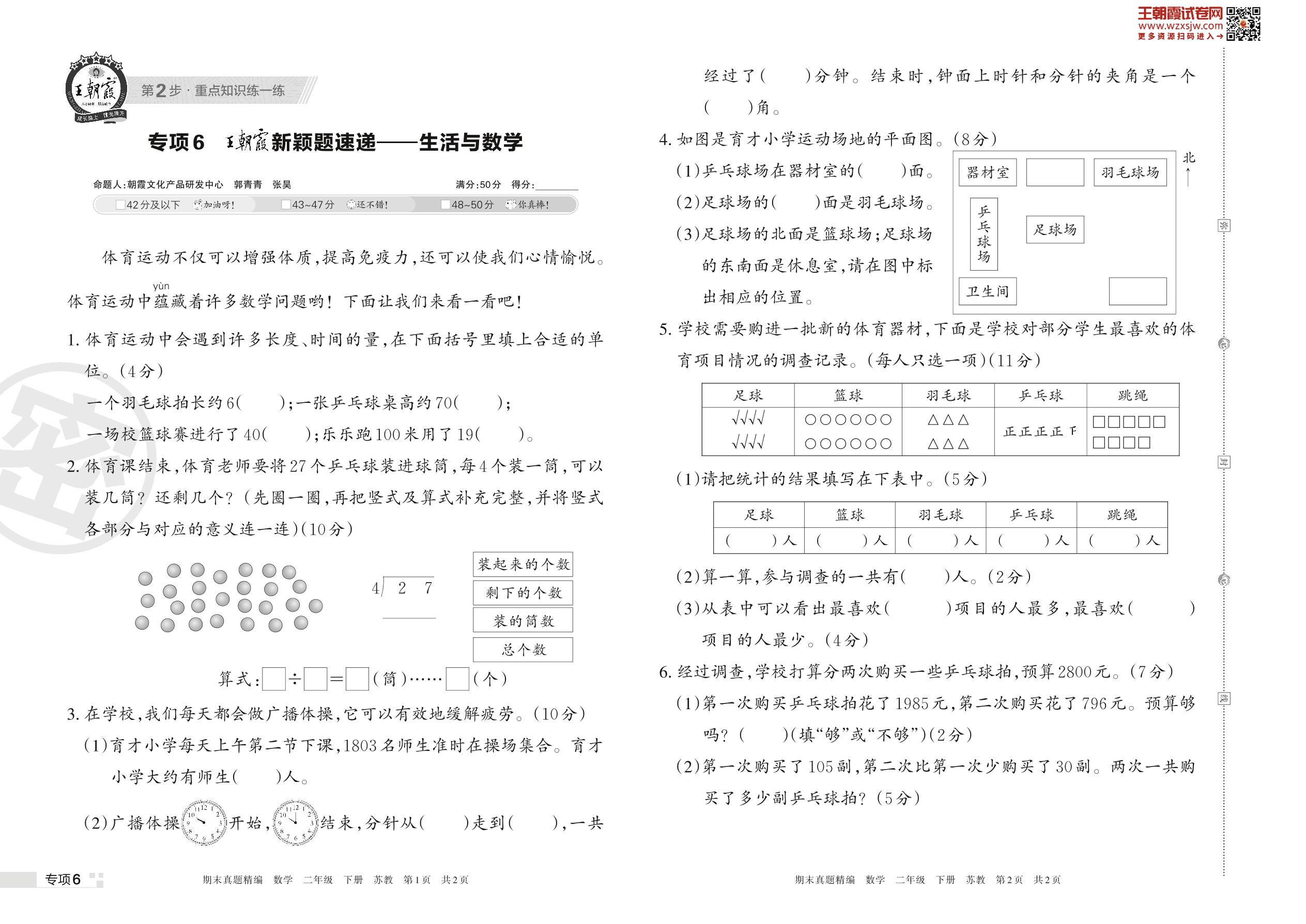 王朝霞期末专项卷——王朝霞新颖题速递:生活与数学二年级下册数学(苏教版)_R230420125329323【6】