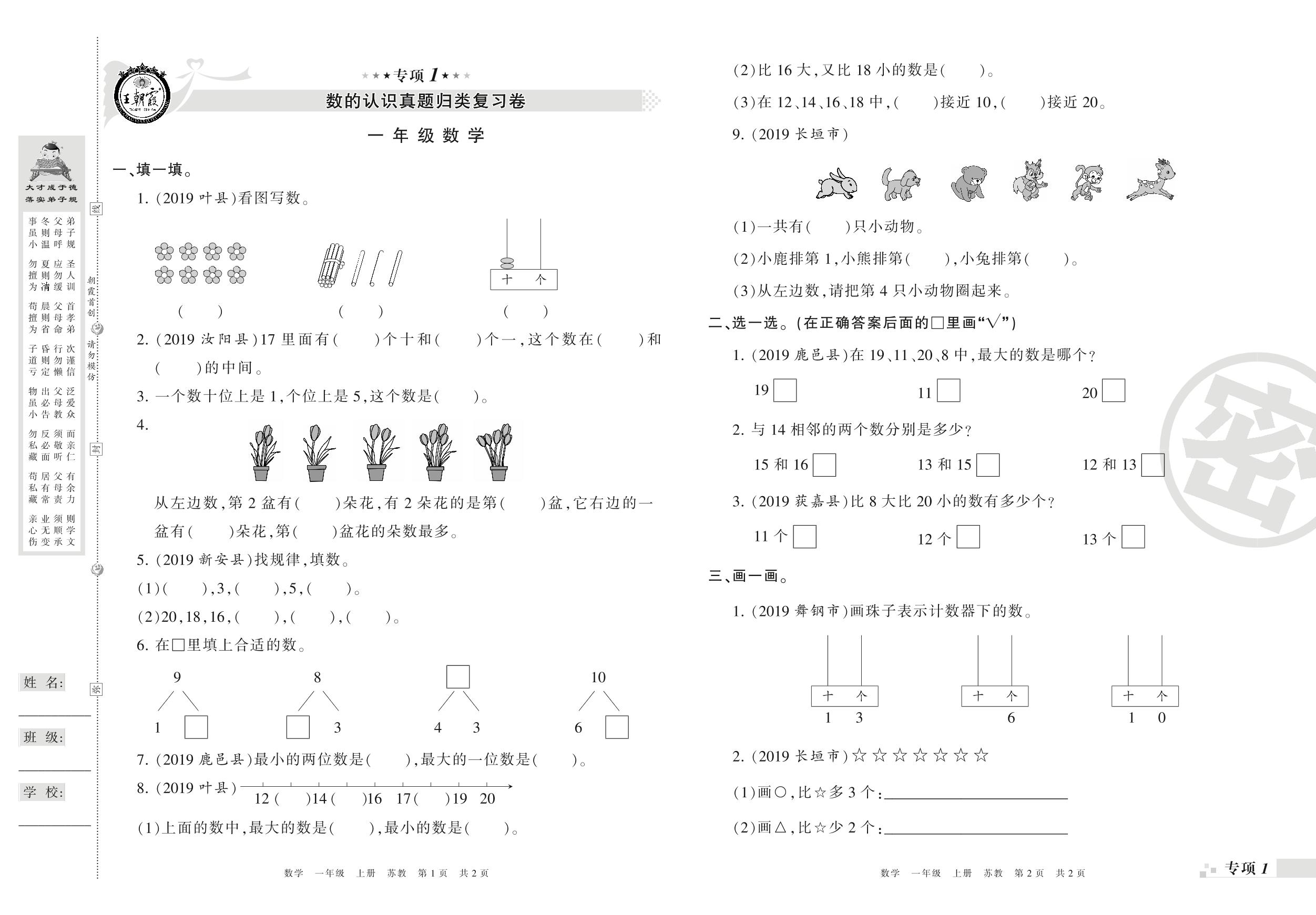 王朝霞期末专项卷——数的认识、计算真题归类复习一年级上册数学(苏教版)_R210802214450【0】