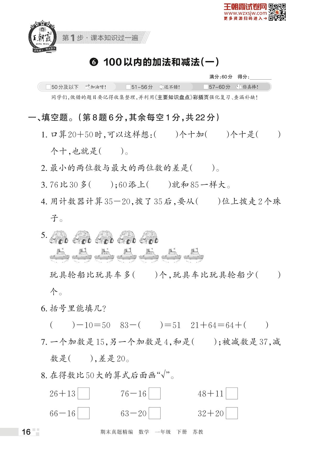 王朝霞期末过课本——6 100以内的加法和减法(一)一年级下册数学(苏教版)_R230420130021635