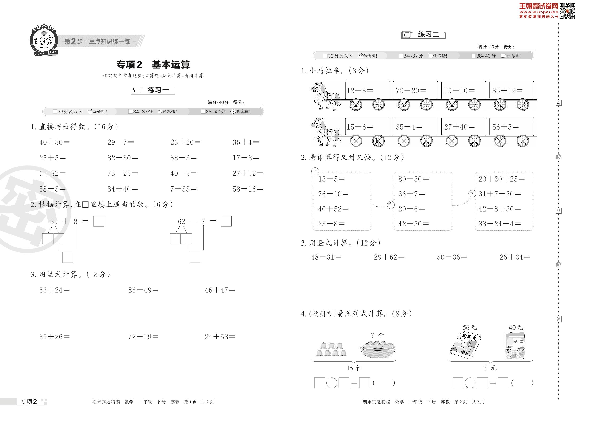 王朝霞期末专项卷——基本运算一年级下册数学(苏教版)_R230420130022977【2】