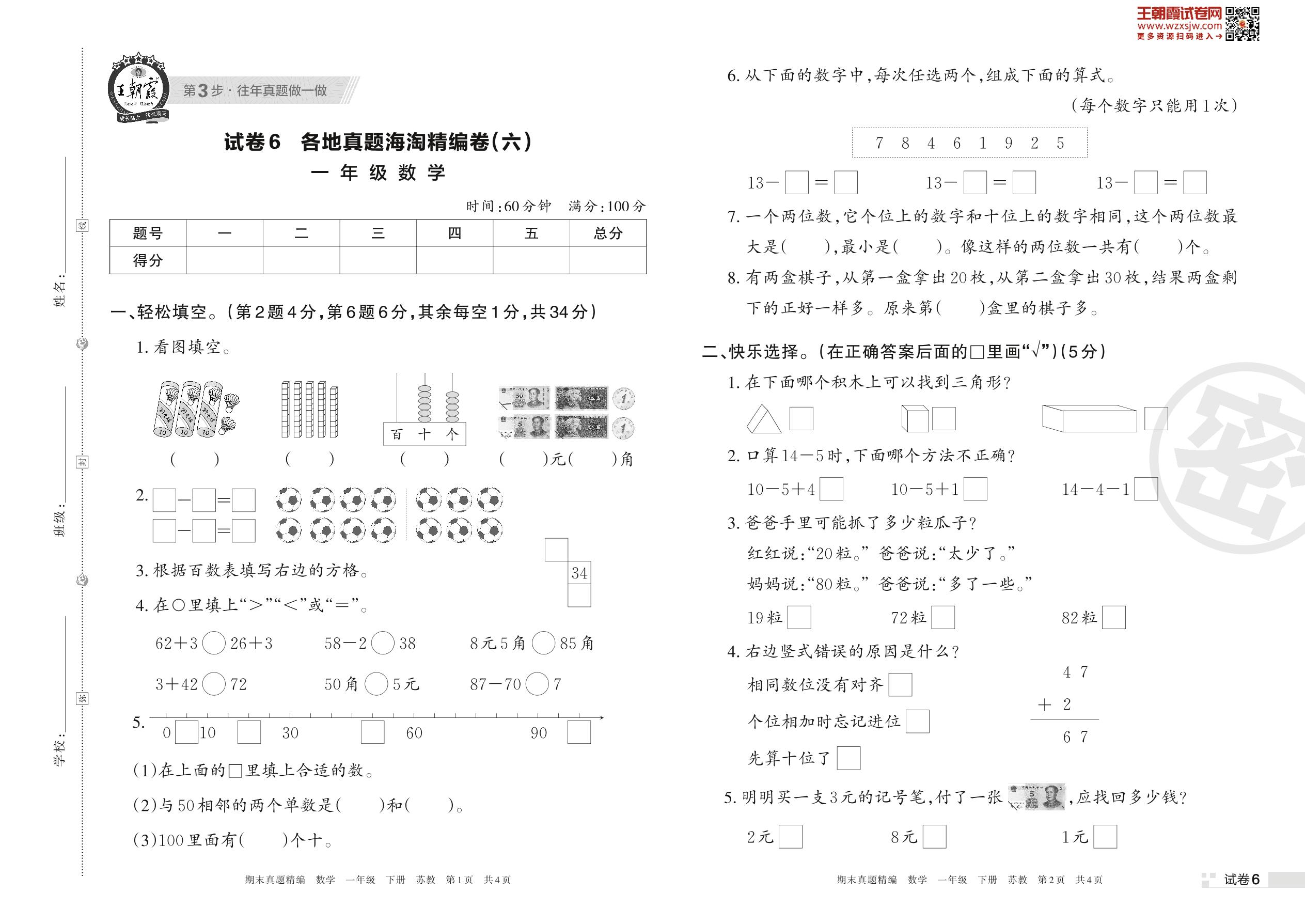 各地真题海淘精编卷(六)一年级下册数学(苏教版)_R230420130023562【6】