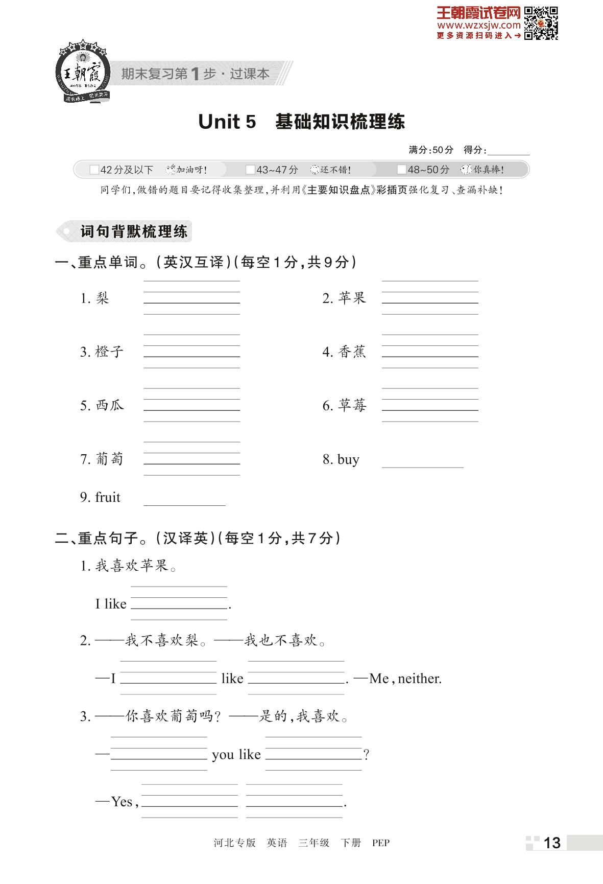 王朝霞期末过课本——Unit 5 基础知识梳理练三年级下册英语(PEP版)_R230420134306504