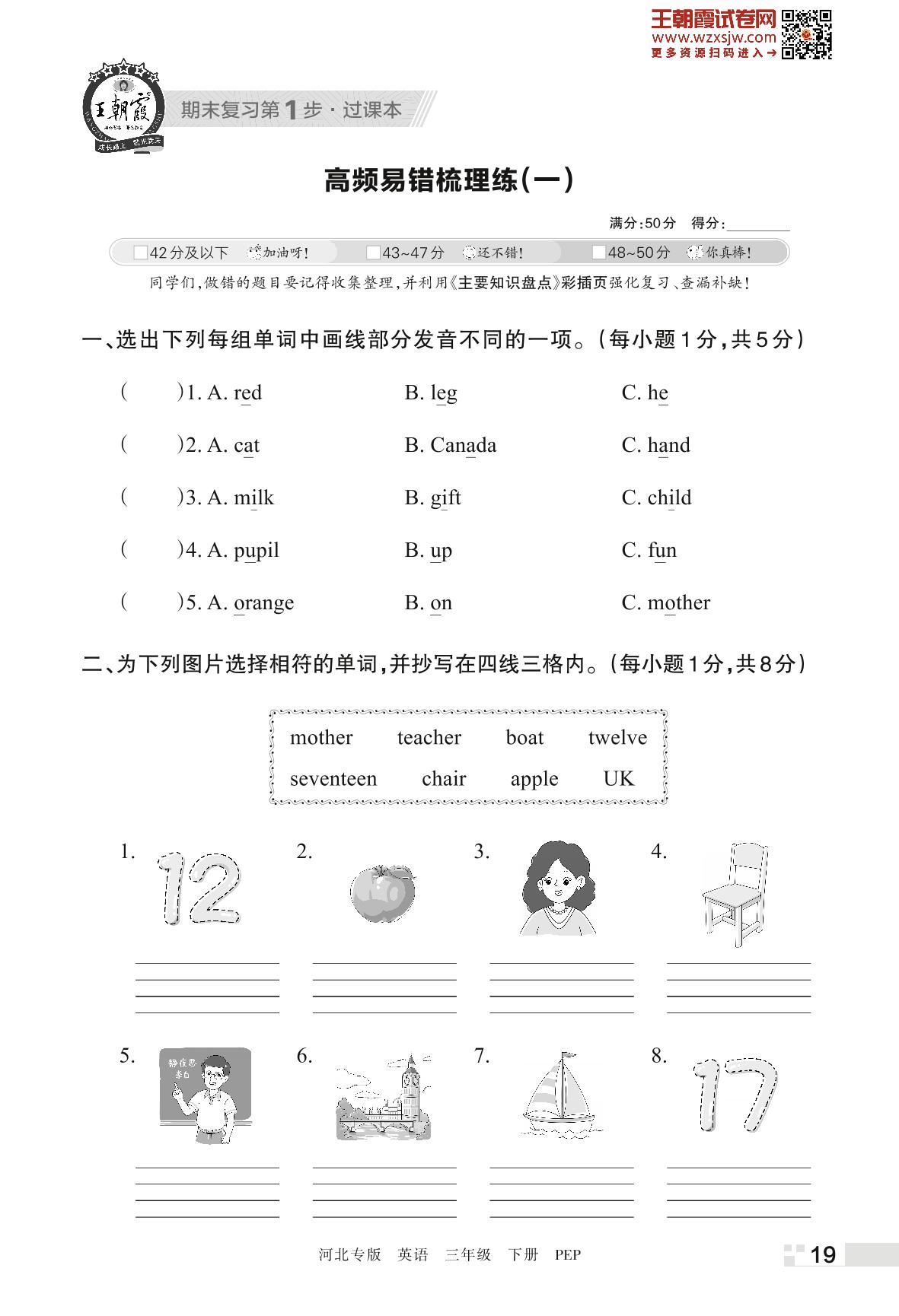 王朝霞期末过课本——高频易错梳理练(一)三年级下册英语(PEP版)_R230420134306710