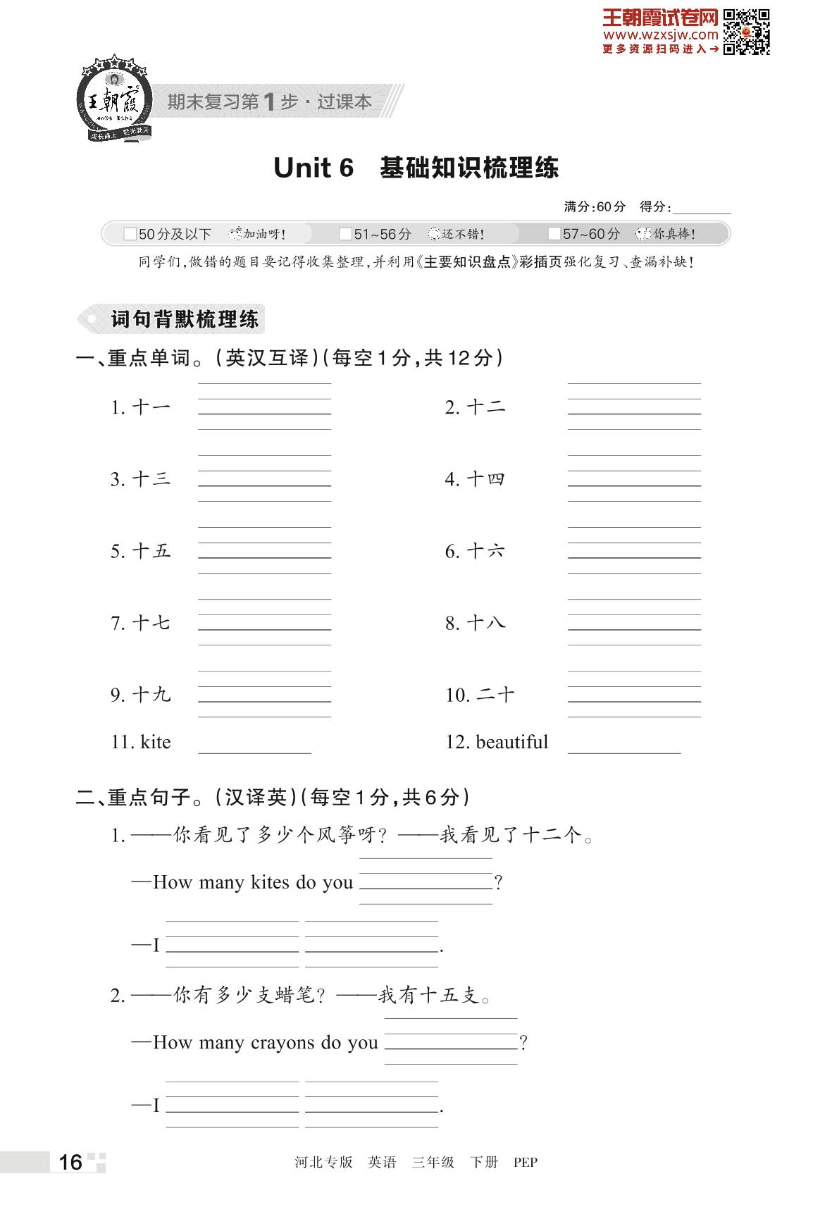 王朝霞期末过课本——Unit 6 基础知识梳理练三年级下册英语(PEP版)_R230420134307884