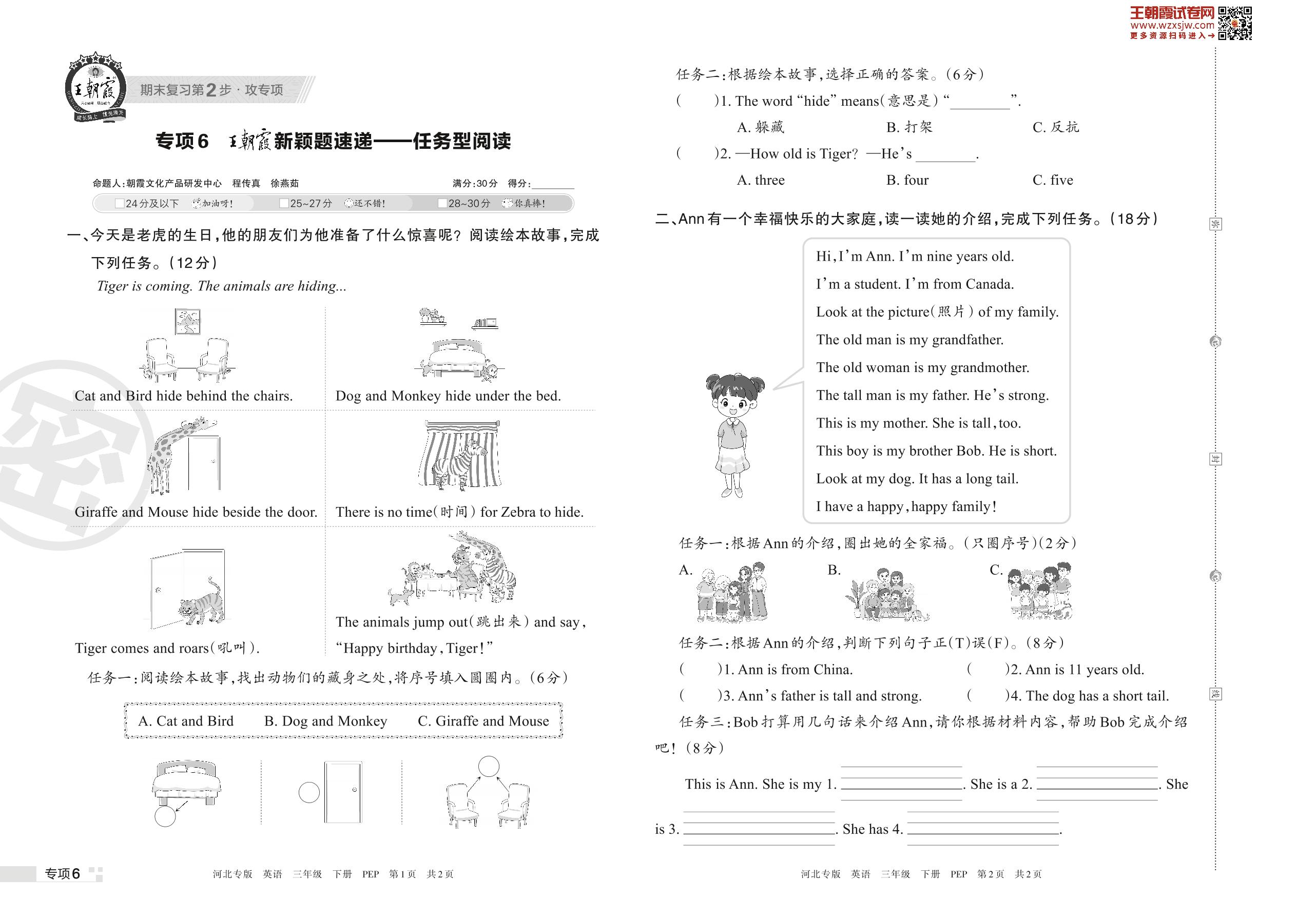 王朝霞期末专项卷——王朝霞新颖题速递:任务型阅读三年级下册英语(PEP版)【6】