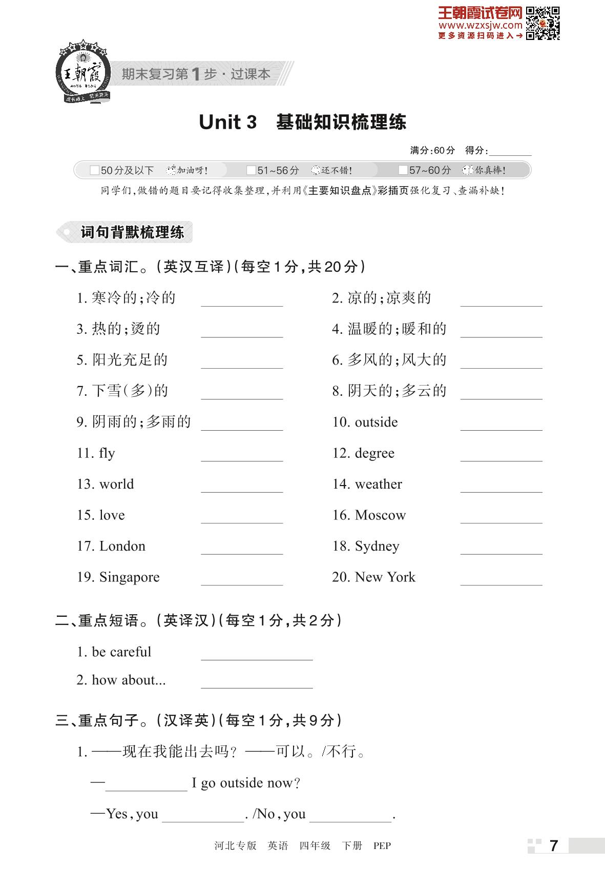 王朝霞期末过课本——Unit 3 基础知识梳理练四年级下册英语(PEP版)_R230420135008406