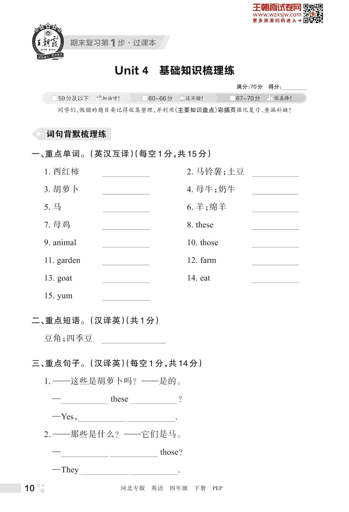 王朝霞期末过课本——Unit 4 基础知识梳理练四年级下册英语(PEP版)_R230420135008306