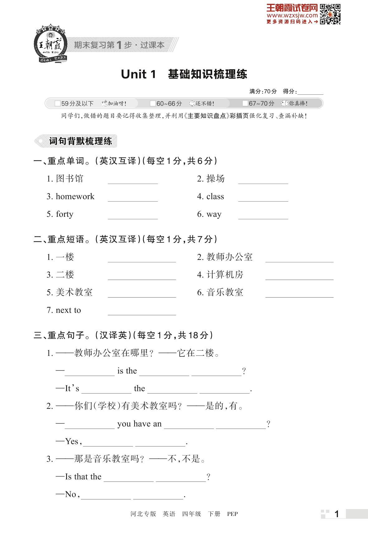 王朝霞期末过课本——Unit 1 基础知识梳理练四年级下册英语(PEP版)_R230420135009391