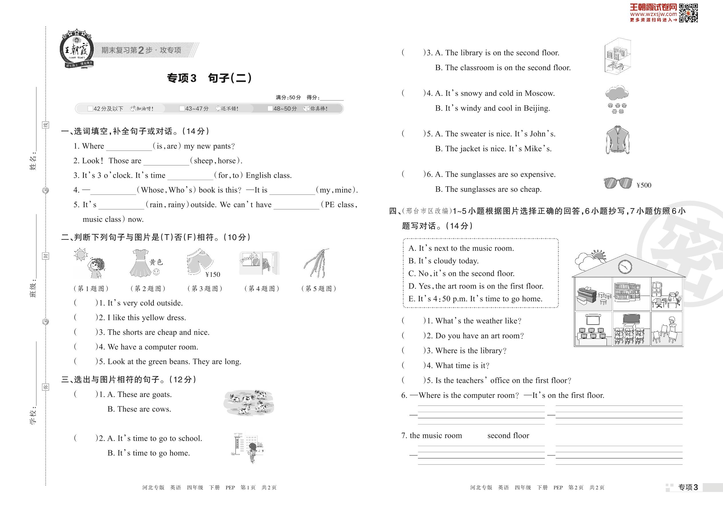 王朝霞期末专项卷——句子(二)四年级下册英语(PEP版)_R230420135010709【3】