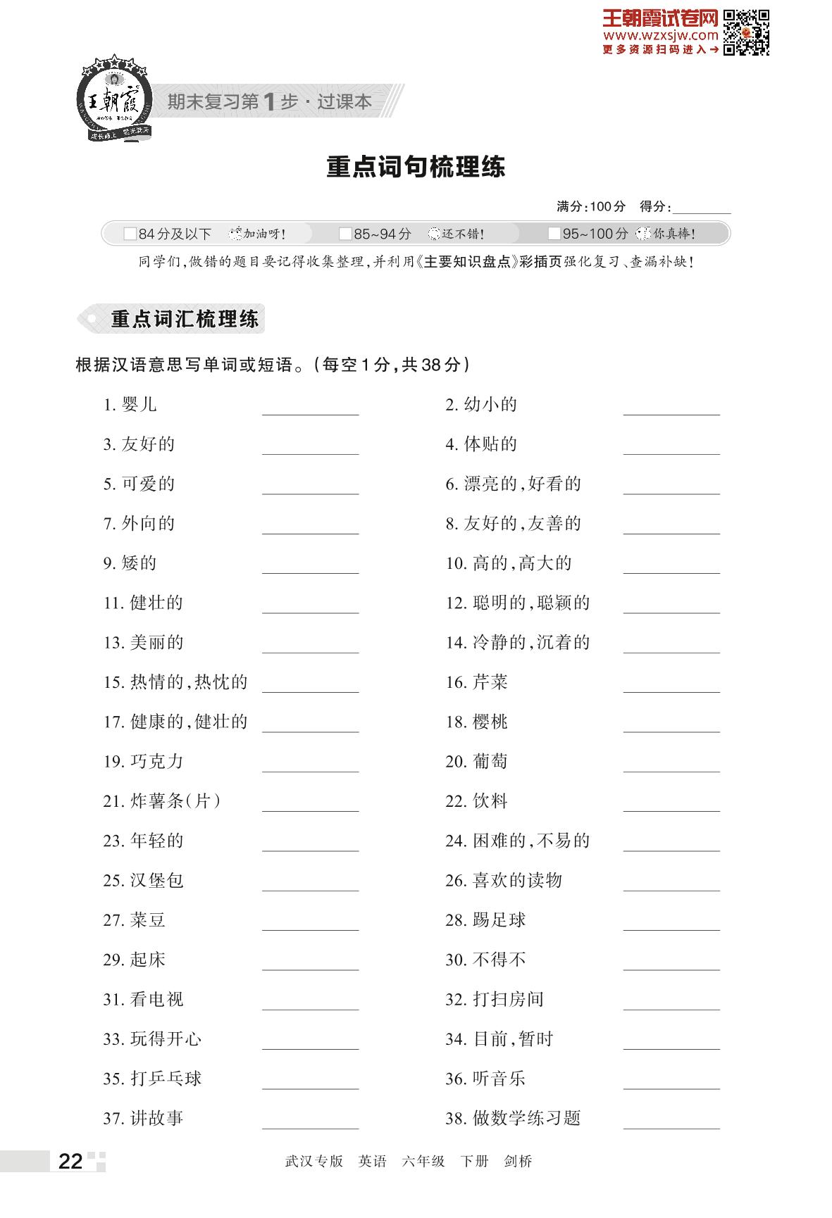 王朝霞期末过课本——重点词句梳理练六年级下册英语(剑桥版)_R230420135710353