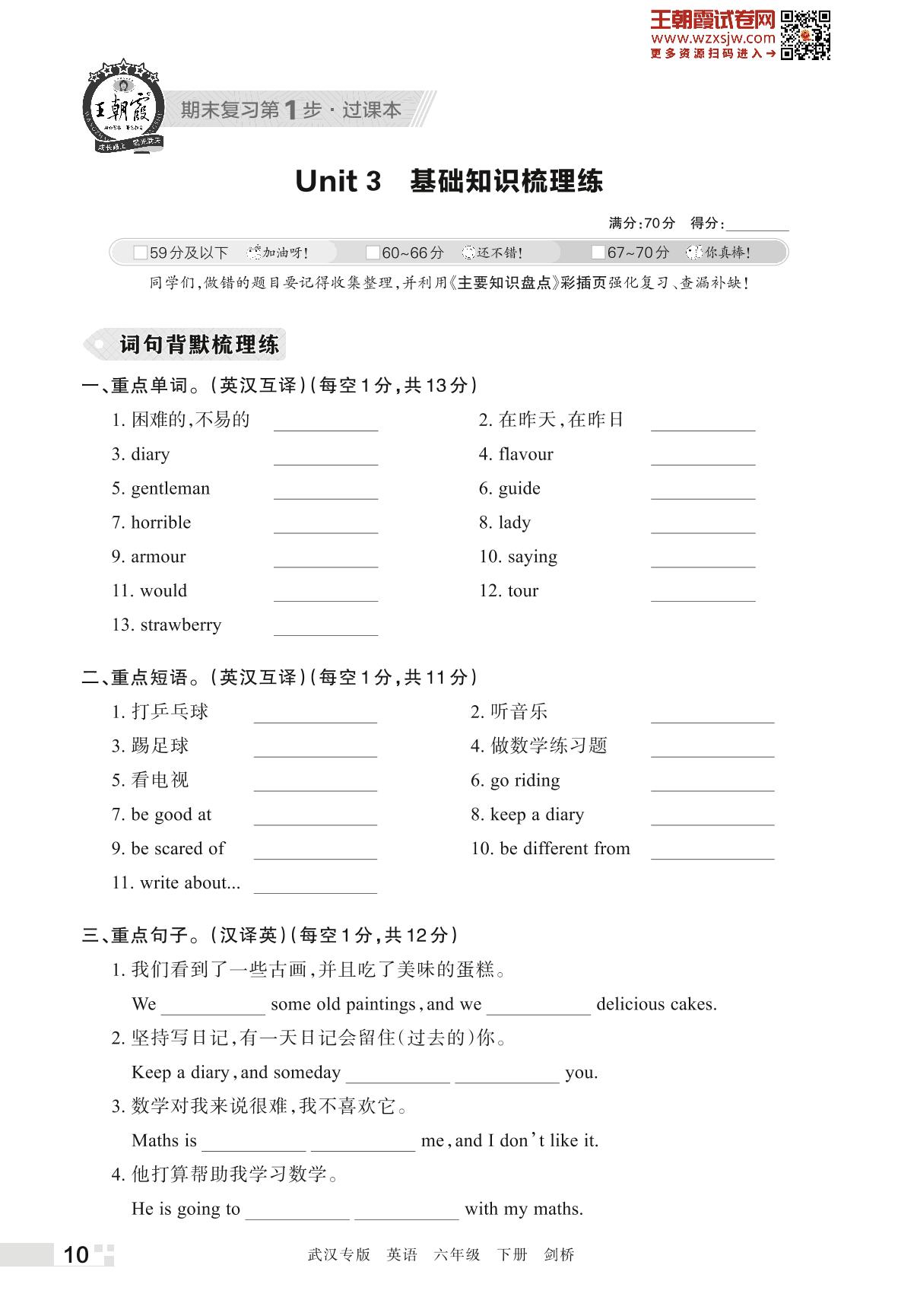 王朝霞期末过课本——Unit 3 基础知识梳理练六年级下册英语(剑桥版)_R230420135711070
