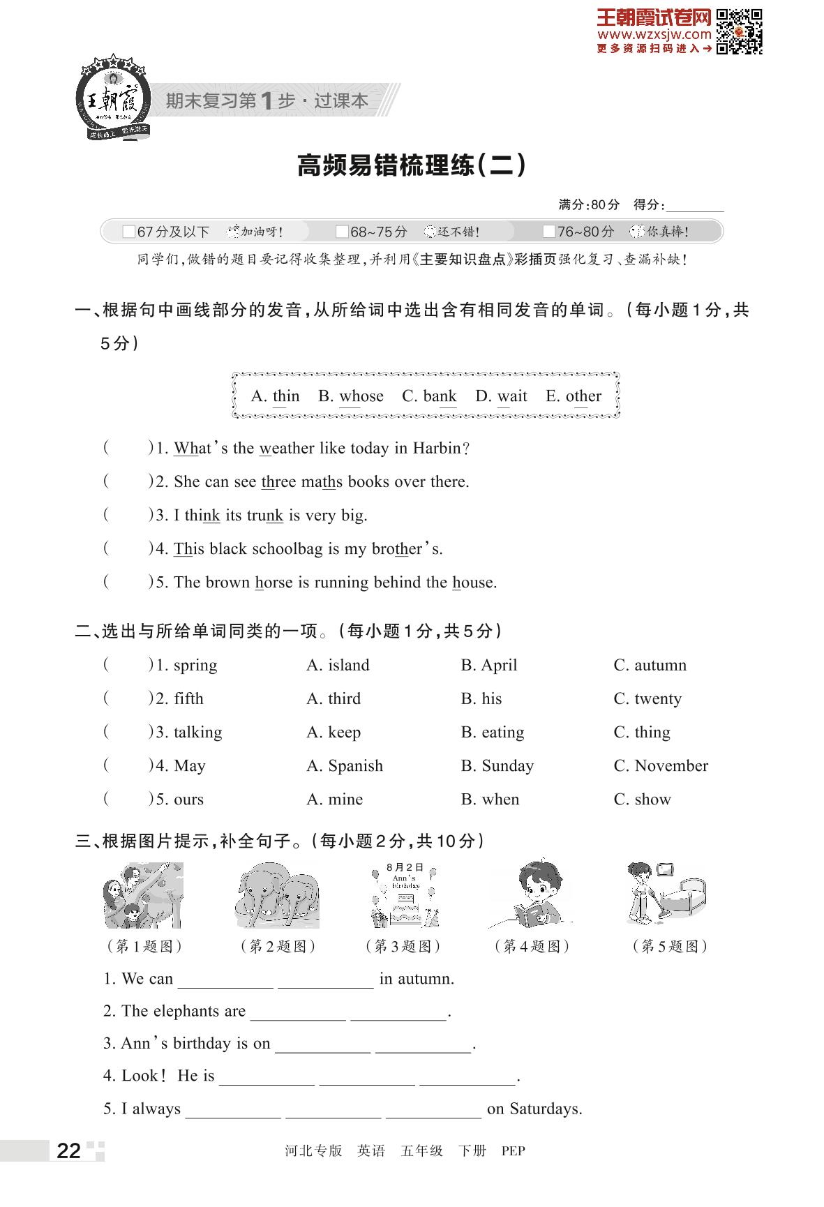 王朝霞期末过课本——高频易错梳理练(二)五年级下册英语(PEP版)_R230420144745984