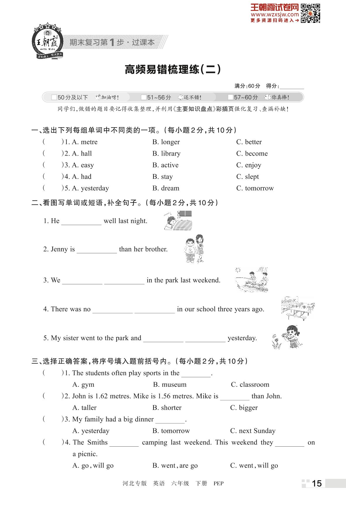 王朝霞期末过课本——高频易错梳理练(二)六年级下册英语(PEP版)_R230420145318137