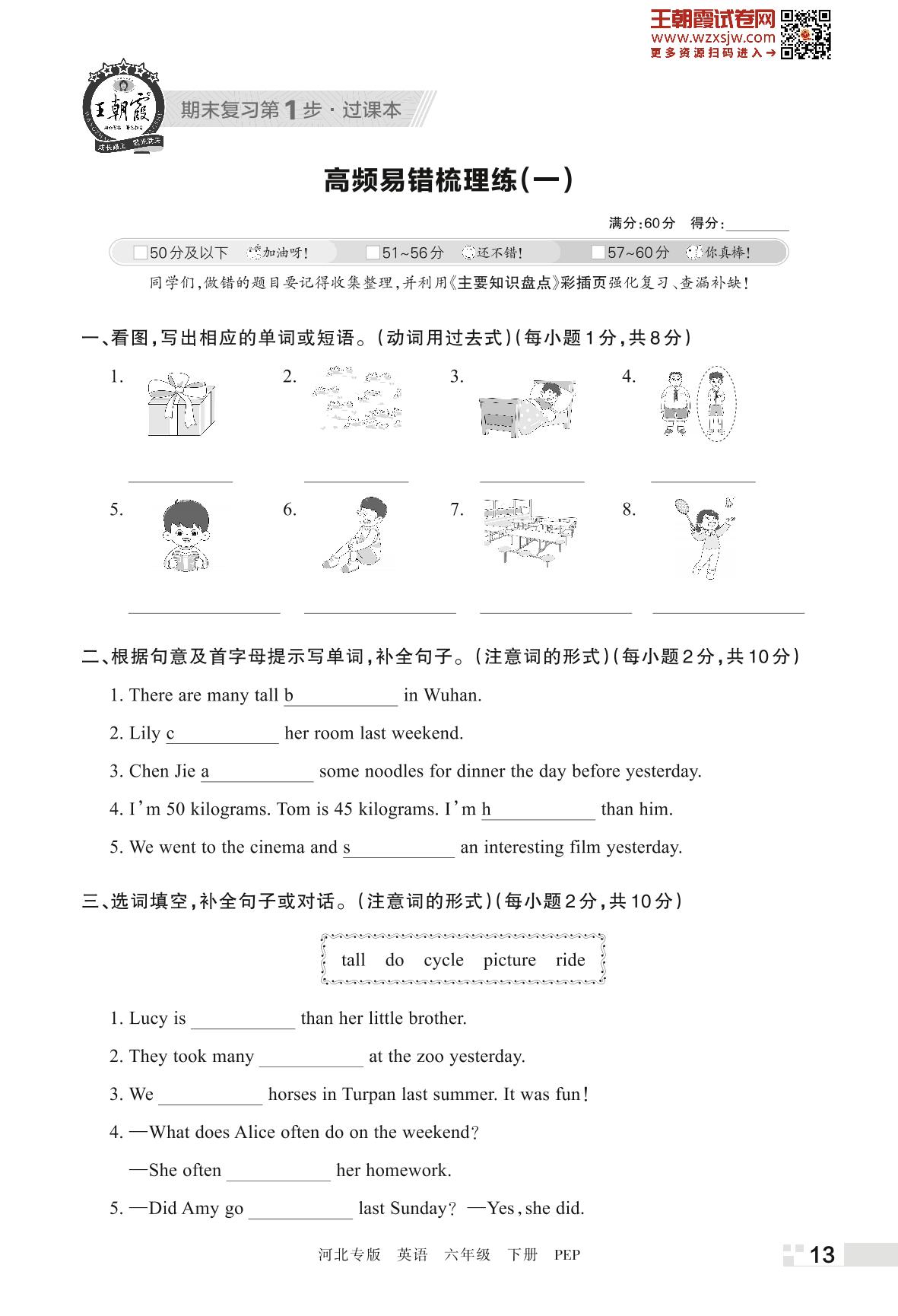 王朝霞期末过课本——高频易错梳理练(一)六年级下册英语(PEP版)_R230420145318590