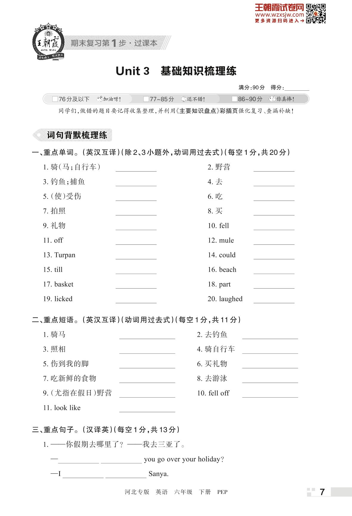王朝霞期末过课本——Unit 3 基础知识梳理练六年级下册英语(PEP版)_R230420145318144