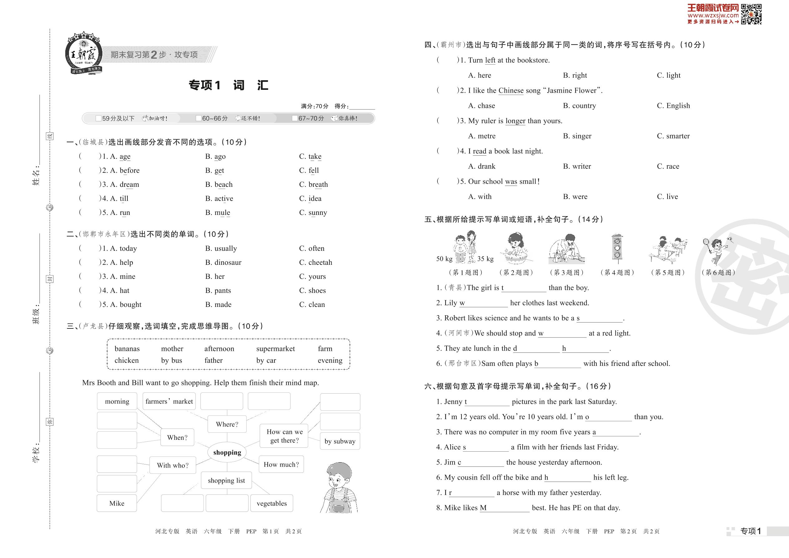 王朝霞期末专项卷——词汇六年级下册英语(PEP版)_R230420145318185【1】