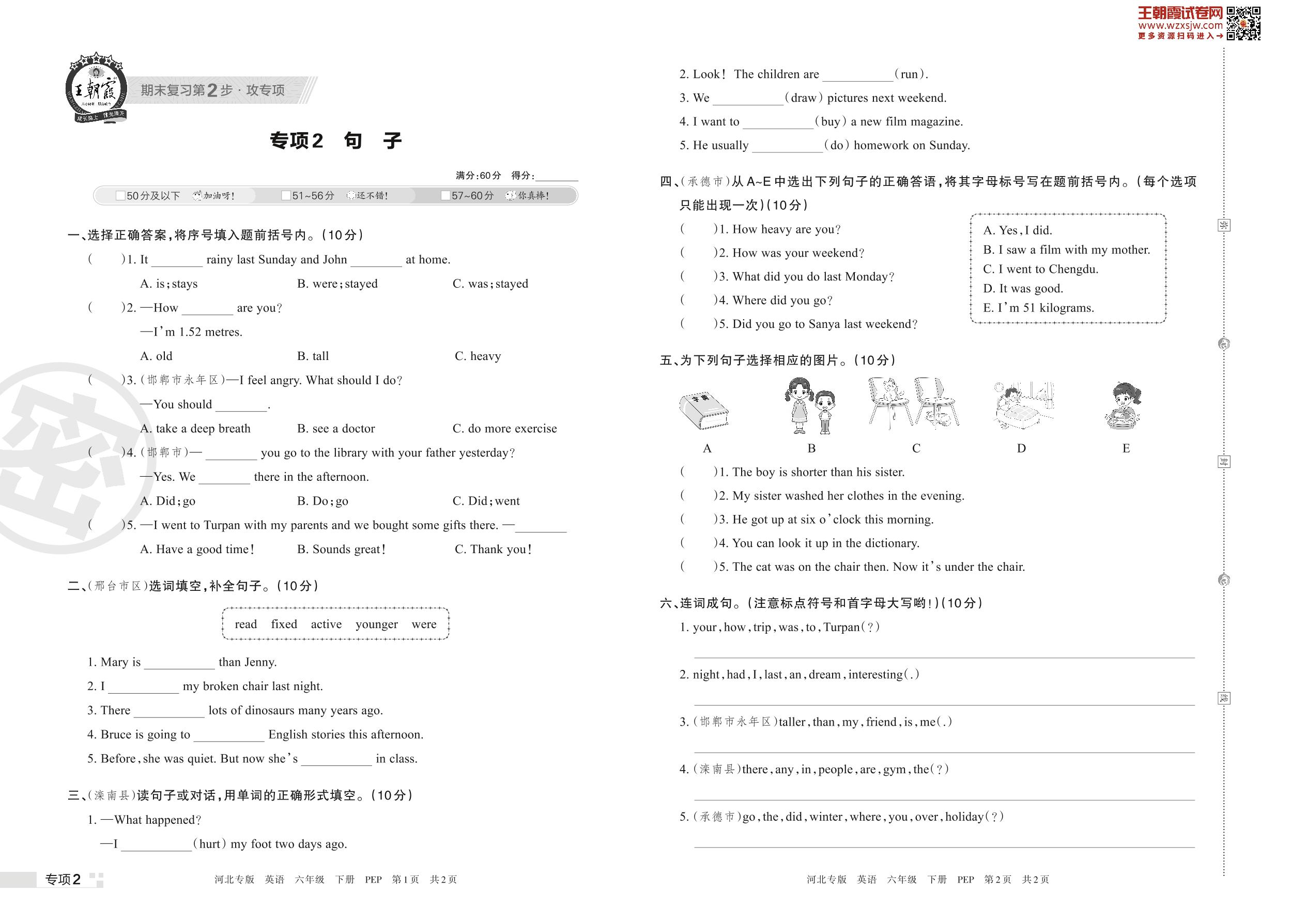 王朝霞期末专项卷——句子六年级下册英语(PEP版)_R230420145319796【2】