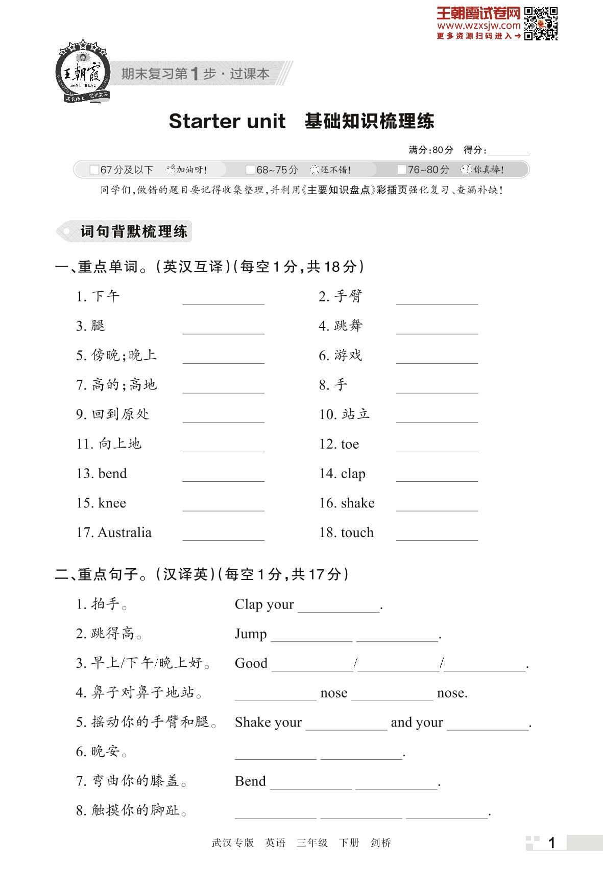 王朝霞期末过课本——Starter unit 基础知识梳理练三年级下册英语(剑桥版)_R230420145823897