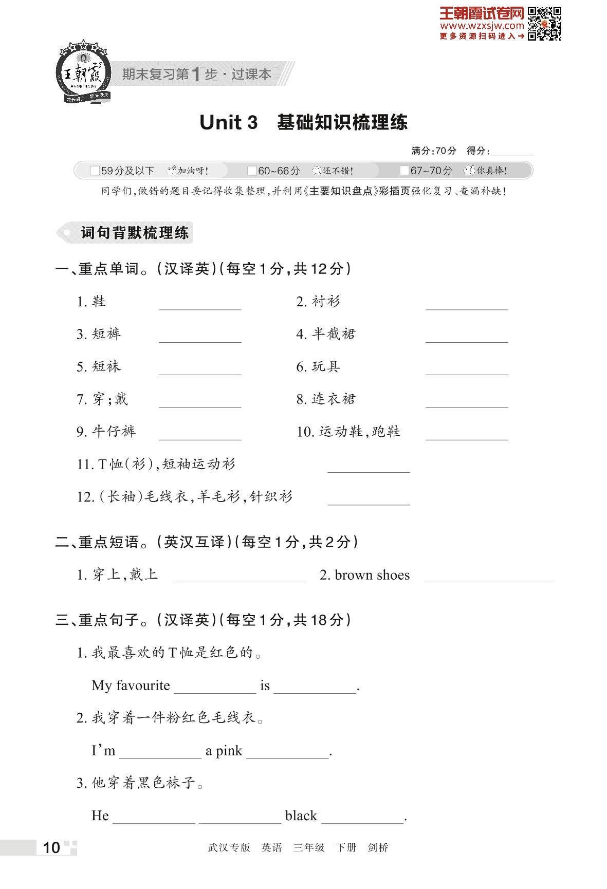王朝霞期末过课本——Unit 3 基础知识梳理练三年级下册英语(剑桥版)_R230420145823735