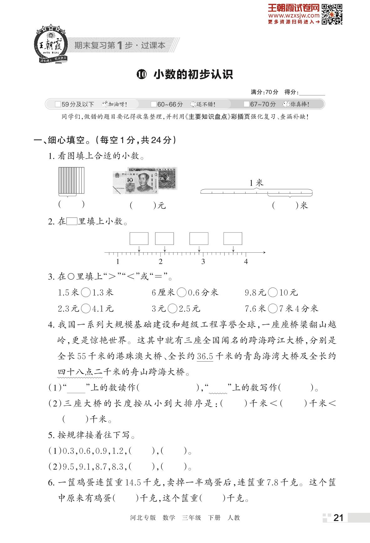 王朝霞期末过课本——10 小数的初步认识三年级下册数学(人教版)