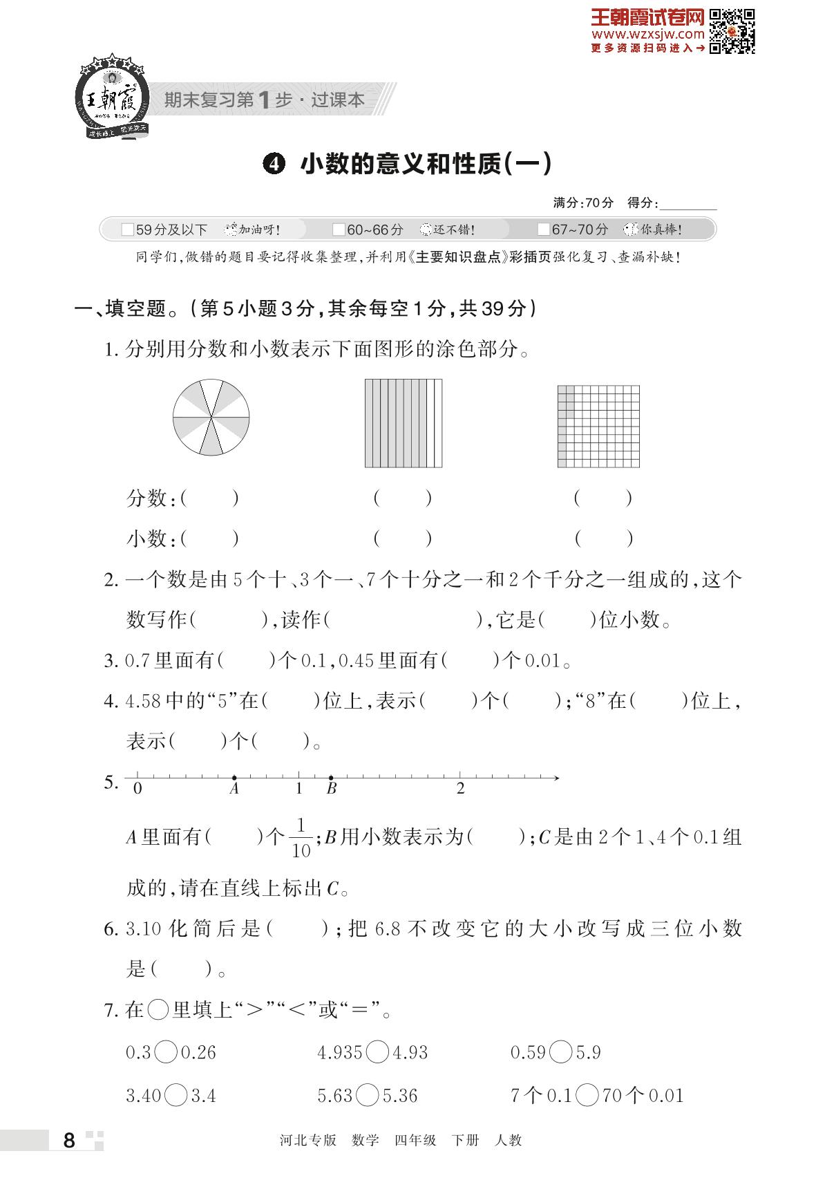 王朝霞期末过课本——4 小数的性质和意义(一)四年级下册数学(人教版)