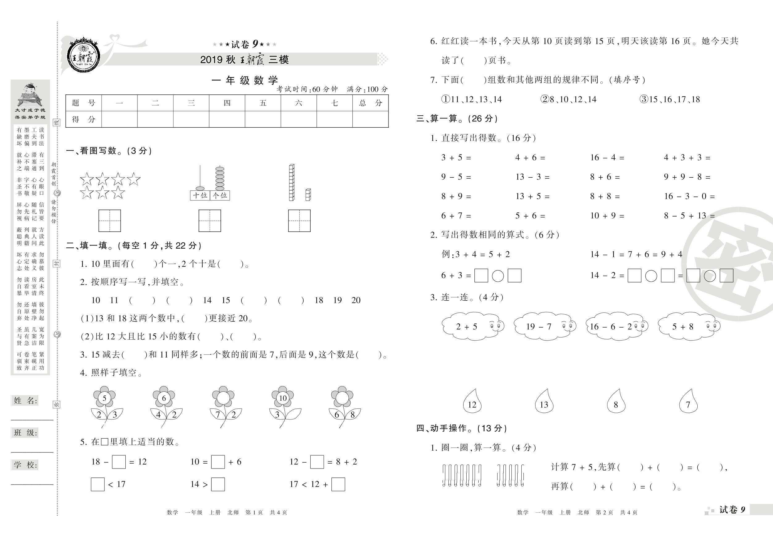 王朝霞期末模拟卷一年级上册数学(北师版)_R210802214628【9】