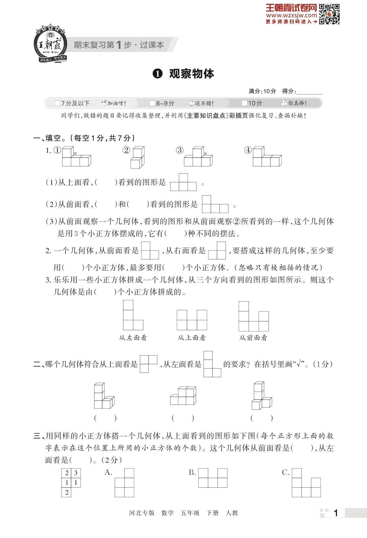王朝霞期末过课本——1 观察物体五年级下册数学(人教版)